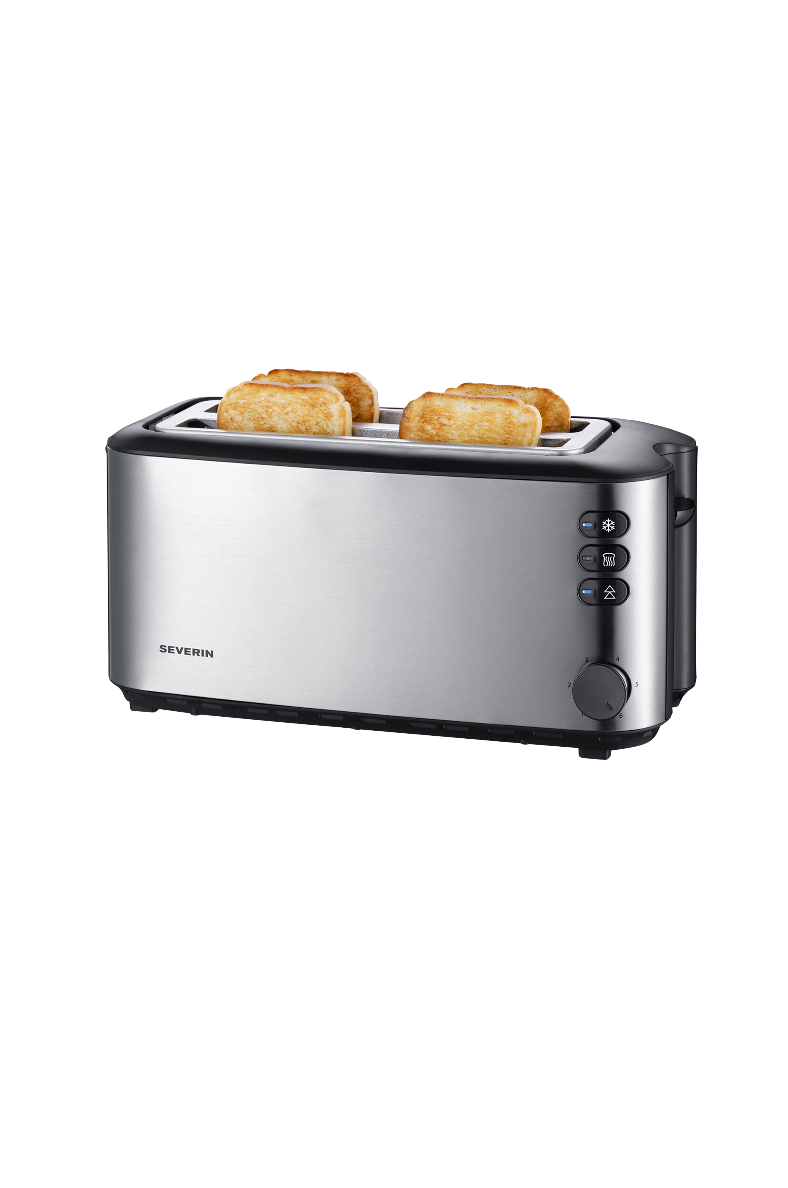 En flot rustfri brødrister med plads til 4-skiver. Brødristerens unikke dobbeltvægge giver brødristeren kolde ydersider. Den elektroniske ristningskontrol med temperatursensor giver altid en perfekt ristning. Perfekt til den store familie, som gerne vil kunne riste flere end 2-skiver ad gangen. Brødristeren har også opvarmningsfunktion, stopknap og krummerum. Effekt 1400 W og kapacitet 1-4 skiver