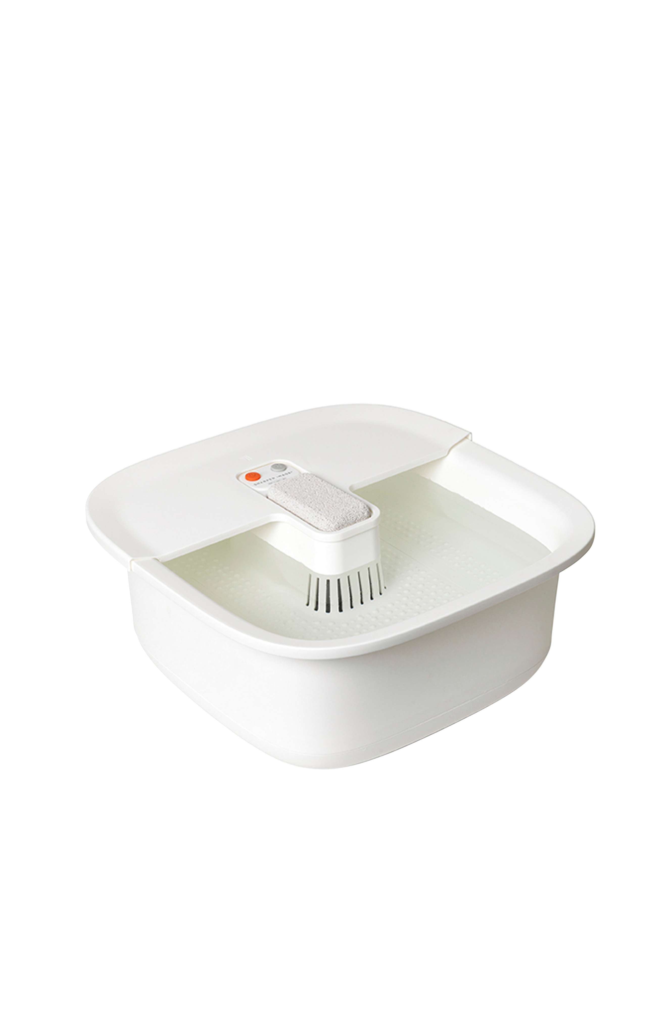 Fodbadet har indbygget slipesten til hård hud og kan med fordel bruges mod ligtorne. Brug fodbadet som aromaterapi ved at hælde aromatiske olier i vandet.