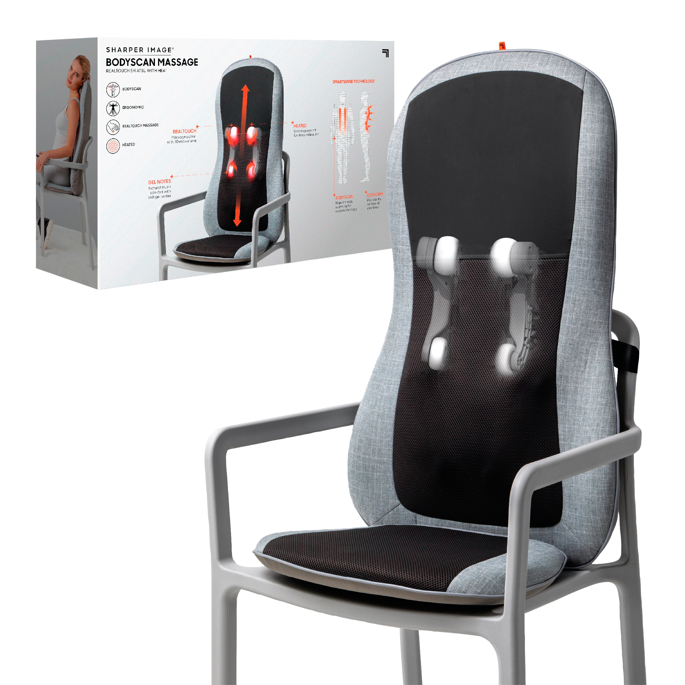 Denne massagehynde giver en brugertilpasset og dybdegående shiatsumassage på ryggen og kan bruges både siddende og liggende. Massagehynden har fire gelmassageknopper, der masserer ryggen på samme måde som fingerspidserne, hvilket giver en naturtro massageoplevelse. Massagehynden kan indstilles til at give en fokuseret massage af enten øvre eller nedre ryg, og indeholder varmeterapi, der lindrer og opløser muskelspændinger i hele ryggen.