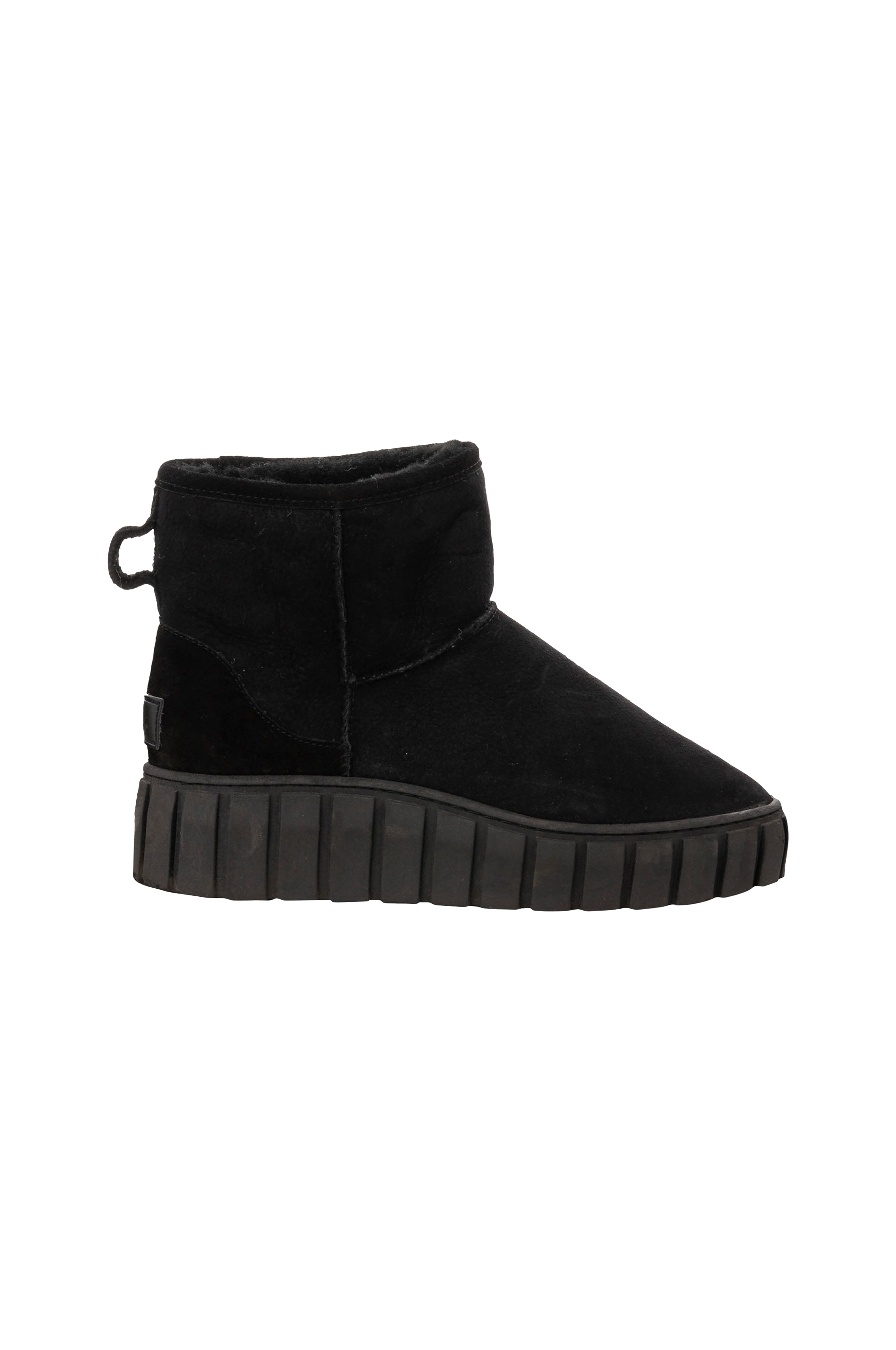 • Ankelhøje boots i ruskind• Blødt, varmt for i fåreuld• Trækstrop bagpå• Riflet platformsål• Skafthøjde: 11,5 cm i str. 37• Sålhøjde: 4,5 cm