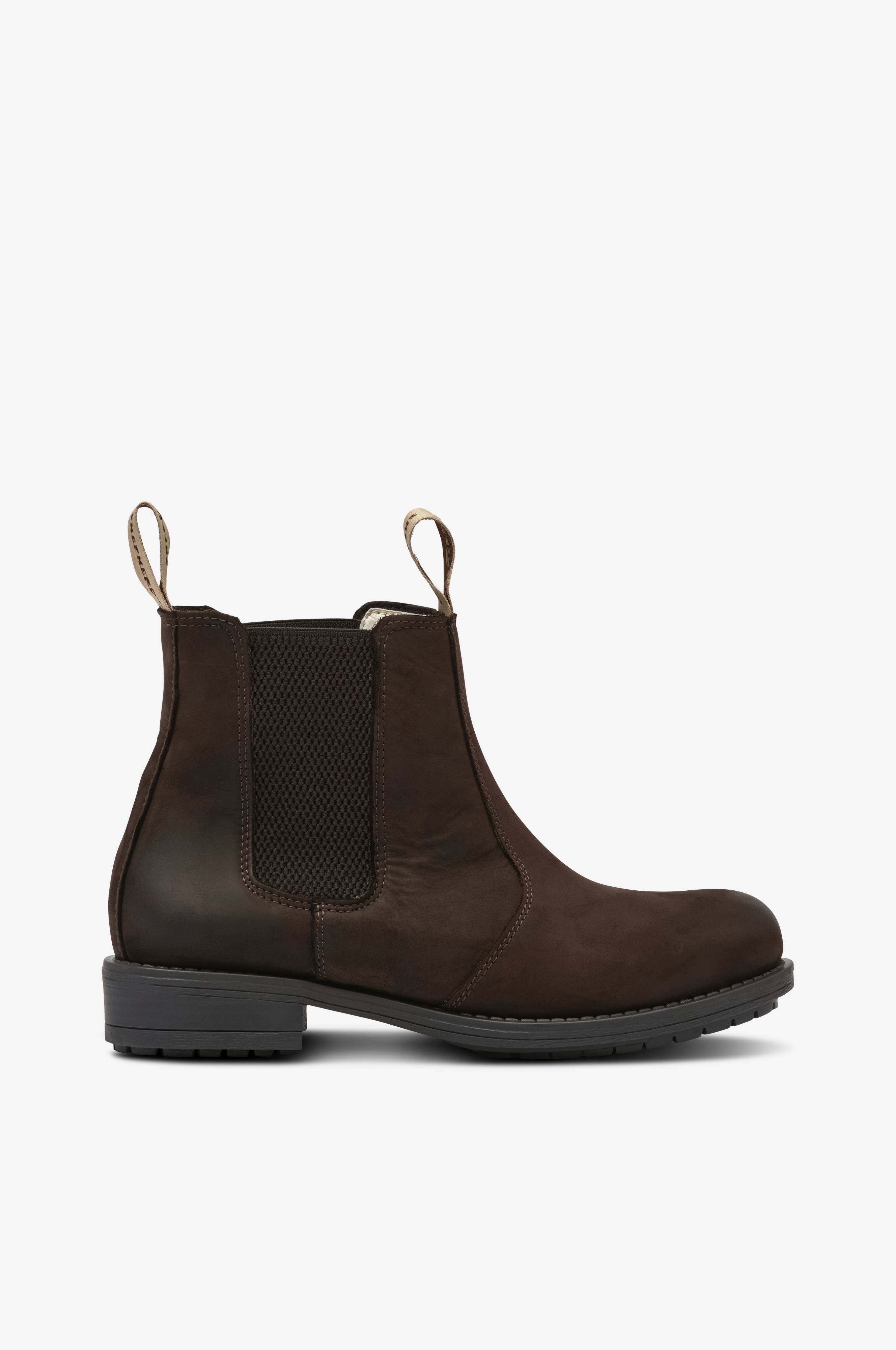Chelsea-boots Sanna fra Shepherd er en meget velforarbejdet chelsea-boots i fin kvalitet med varmende for af fåreuld. Boots er i mat fin nubuck (slebet skind) med elastik på begge sider af skaftet. Vævet træktamp foran og bag på skaftet. Rund tå. Den mønstrede sål er helstøbt og har godt greb, når det er glat udenfor. Skafthøjde: bagpå ca. 13 cm. Hælhøjde: Ca. 3,5 cm.