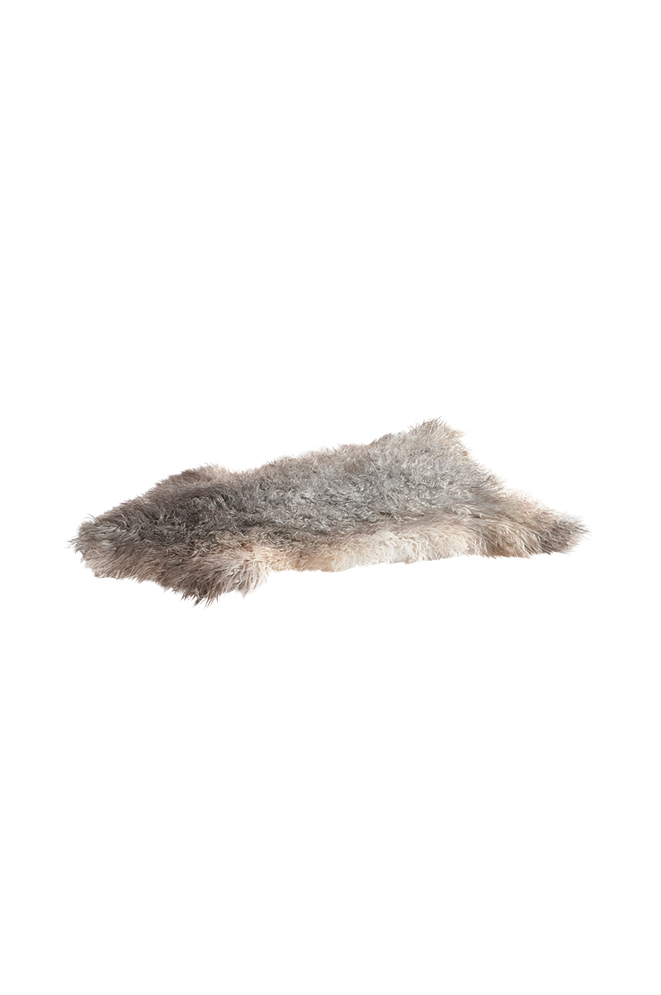 Sanda - langhåret svensk fåreskind fra Gotland. Naturlig farve i grålagtige toner. Hvert skind er unikt i farve og struktur. Skindene er ca. 100x60 cm.