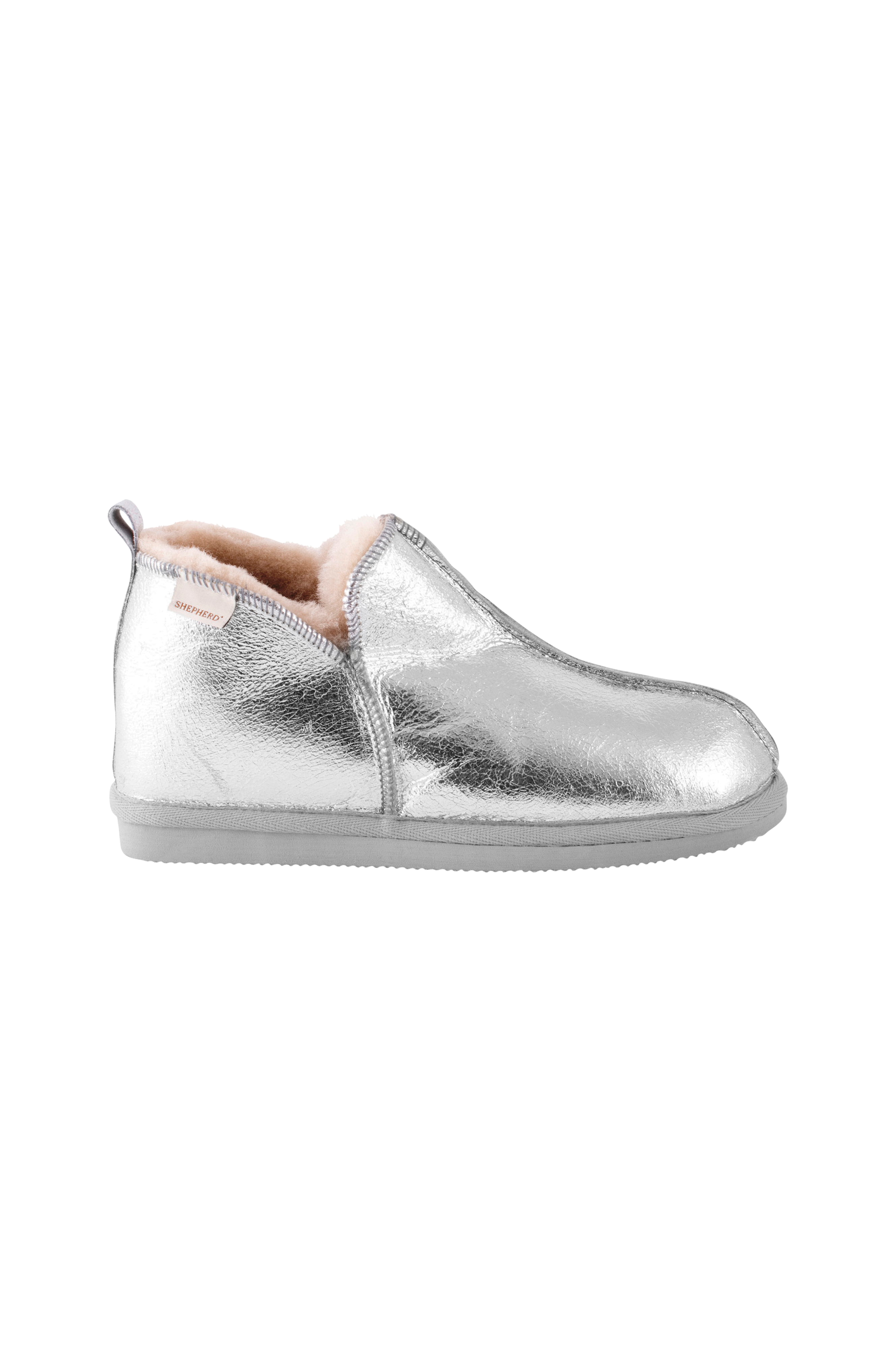 Fåreskindshjemmesko Annie fra Shepherd er en varm og skøn hjemmesko i træk-på-model i fåreskind som varmer og kan ånde. Sålen er robust i affjedrende cellegummi og klarer nemt en tur til postkassen. Slidsålen er riflet. Sålhøjde ca. 2 cm.