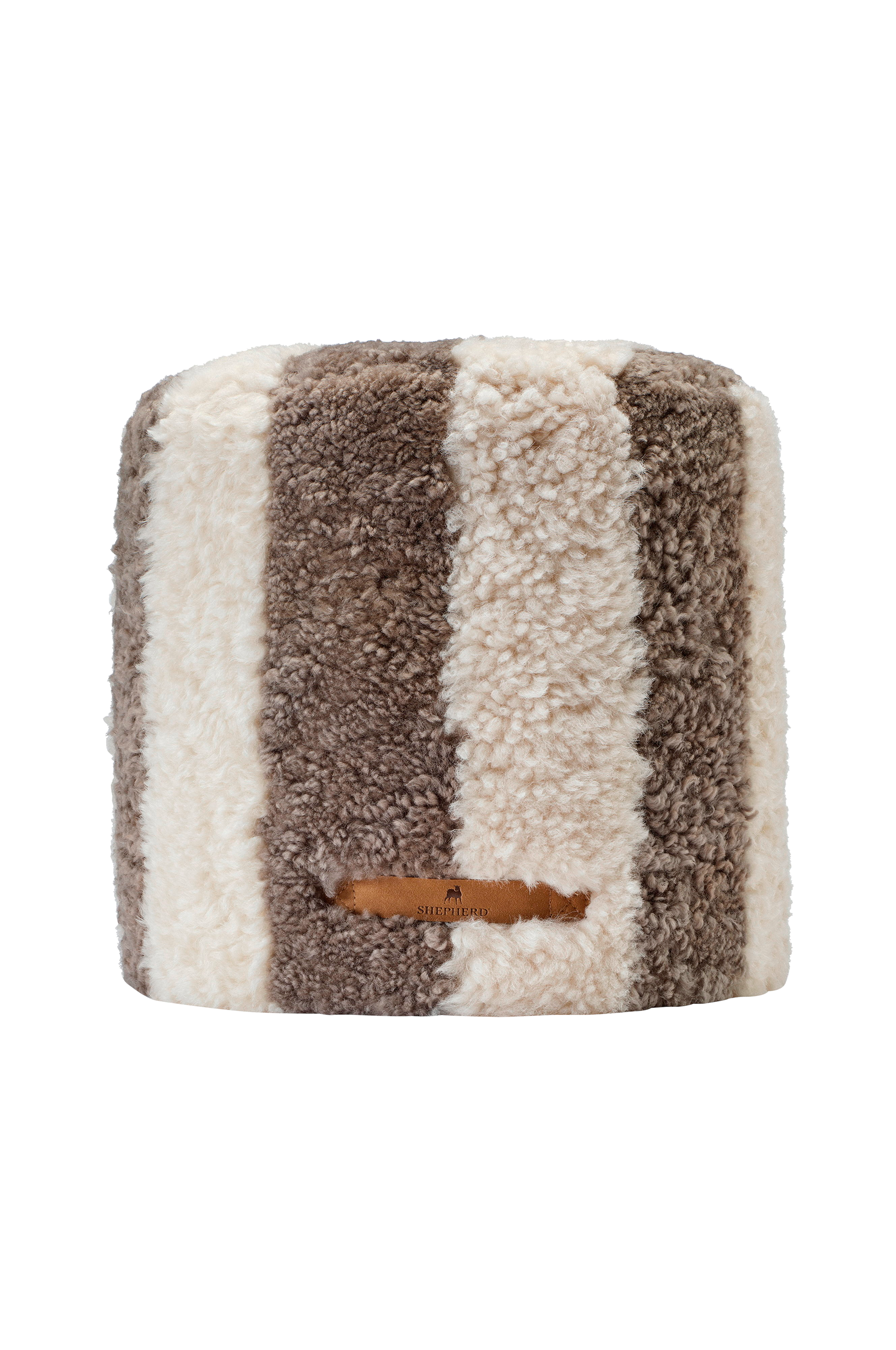 Shepherd randy er en rund puf med et stribet mønster lavet af ægte fåreskind fra Australien. Dens rene, stilfulde design gør den perfekt både som ekstra siddeplads og som et blødt dekorativt element.