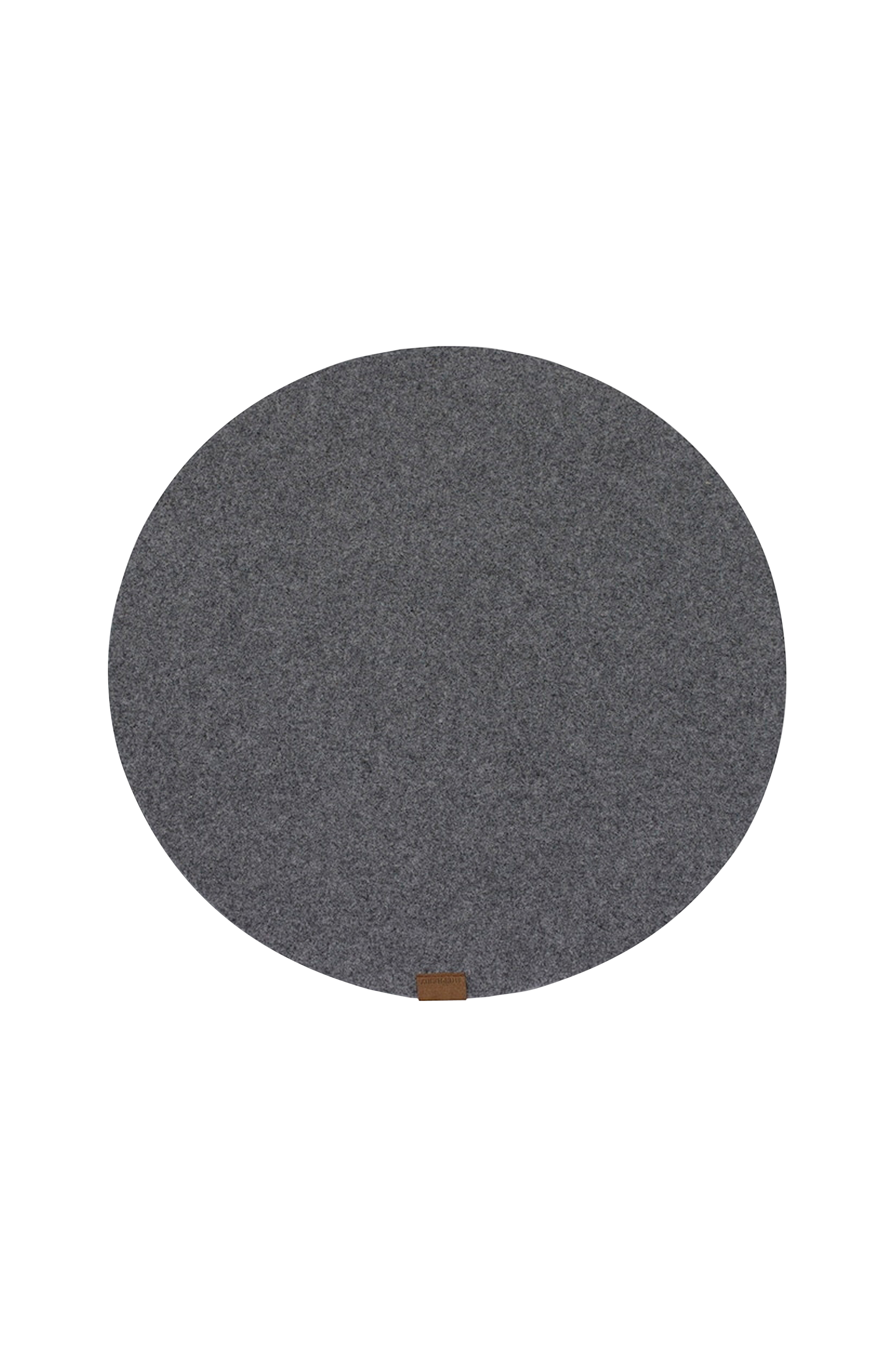 Shepherd Vilma. En rund dækkeserviet i filtet uld. Dækkeservietten kan også med fordel anvendes som grydeunderlag. Dekorativ detalje i imiteret læder.