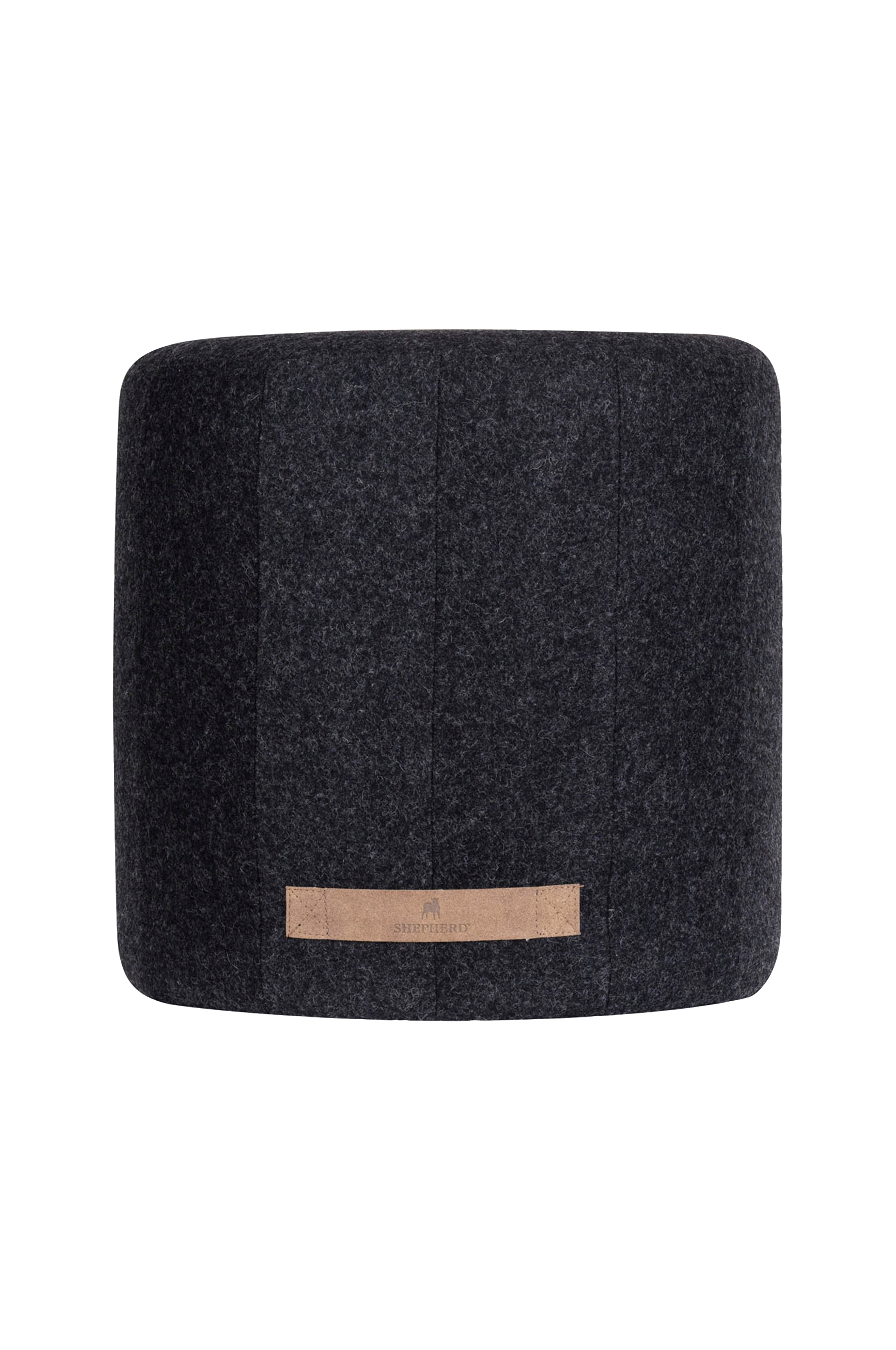 Shepherd zoe er en rund puf lavet af vævet blød uld. Puffen er bygget op af en robust bund, som får puffen til at holde sin form. Toppen er lavet af skum for komfort. Puffen har et dekorativt håndtag af imiteret læder og har dekorative syninger på overfladen. Fåreskindsbetrækket er aftageligt og vaskbart med en løbegang i bunden. Undersiden er lavet af vævet stof.