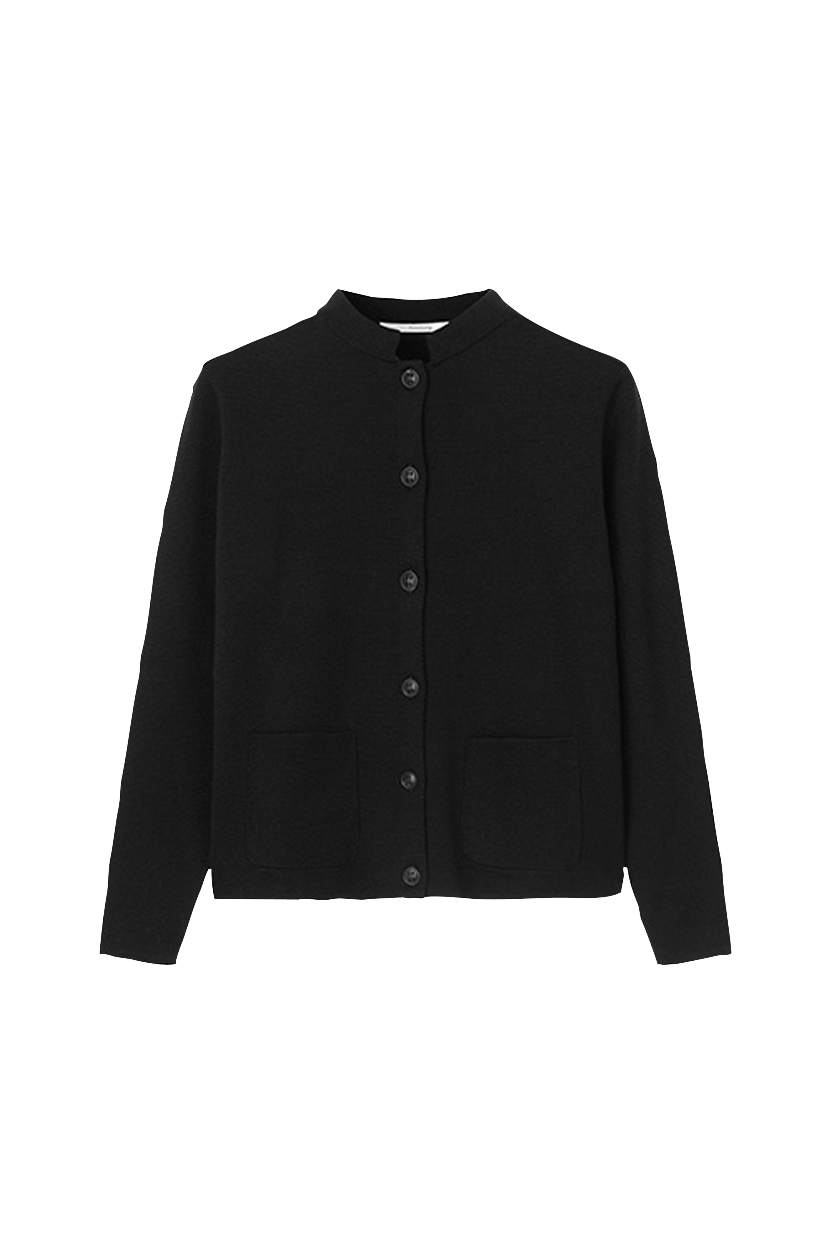 • Fintstrikket cardigan i merinouldblanding med opretstående krave