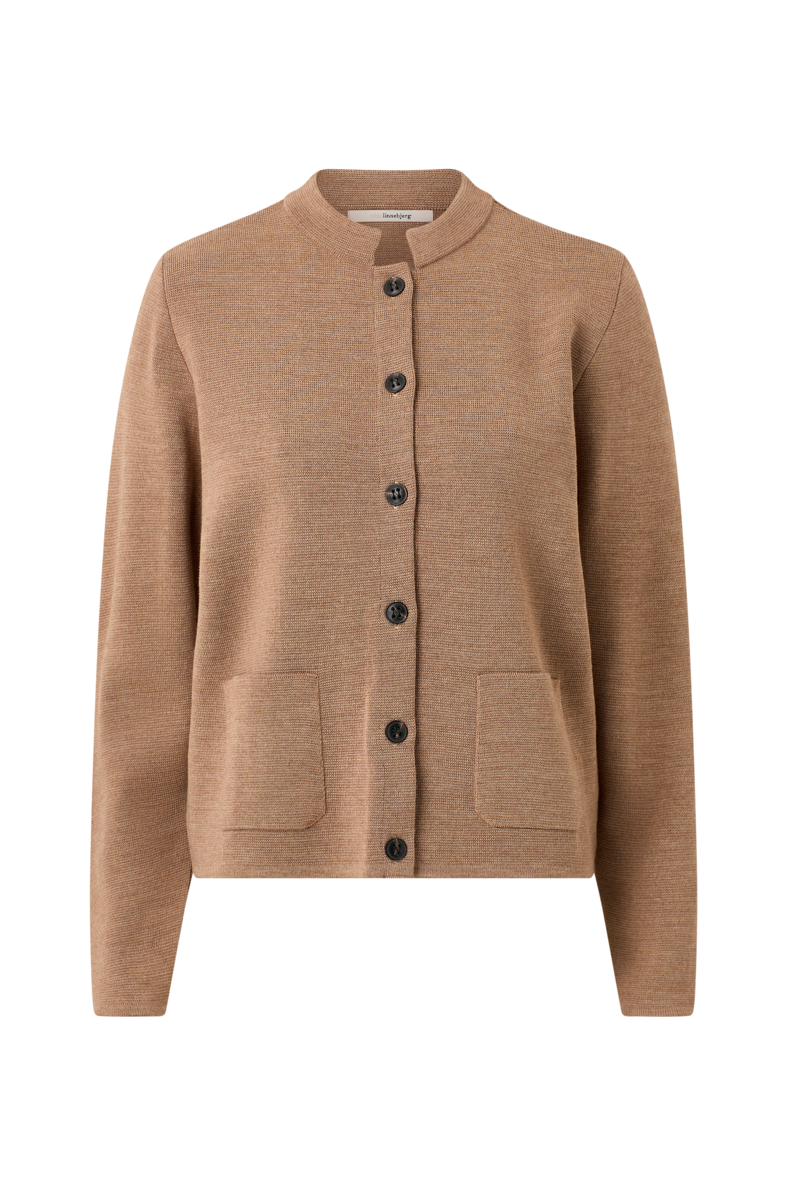 • Fintstrikket, langærmet cardigan i merinouldblanding• Rund halsudskæring• Knaplukning• Forlommer