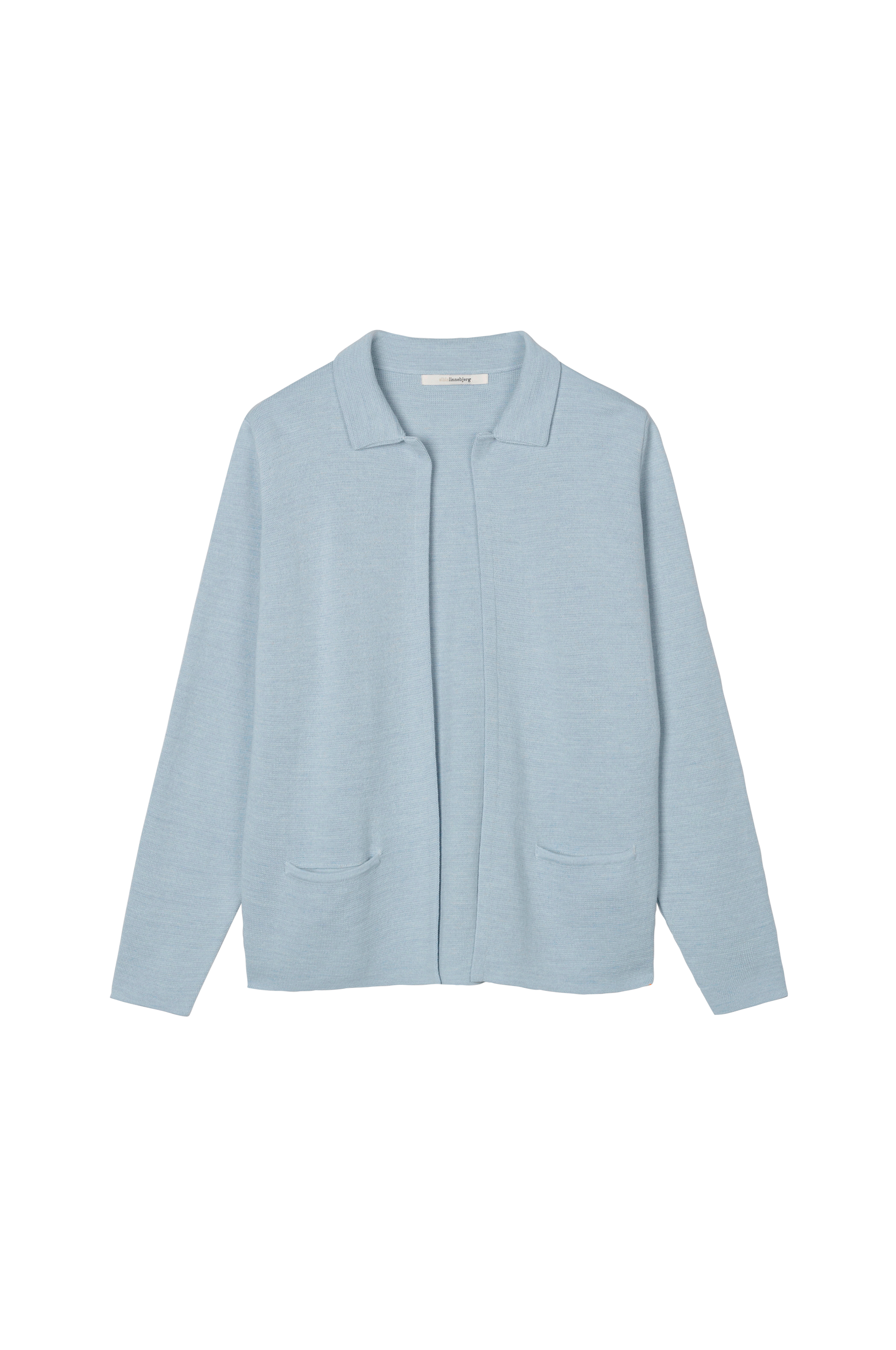 • Lang, åben cardigan med krave• To lommer• Afslappet pasform