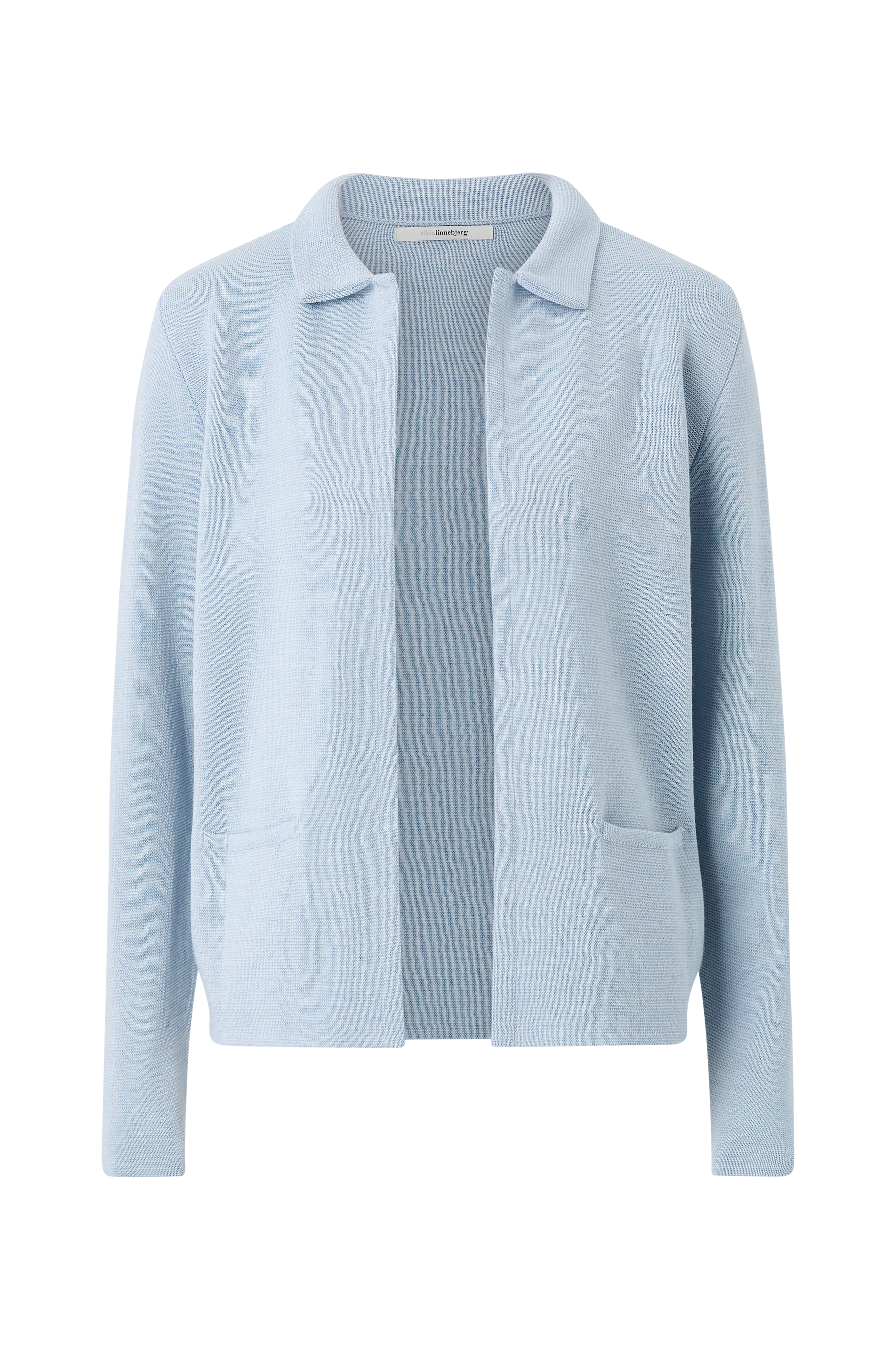 • Fintstrikket, langærmet cardigan i merinouldblanding• Krave• Åben front• Forlommer