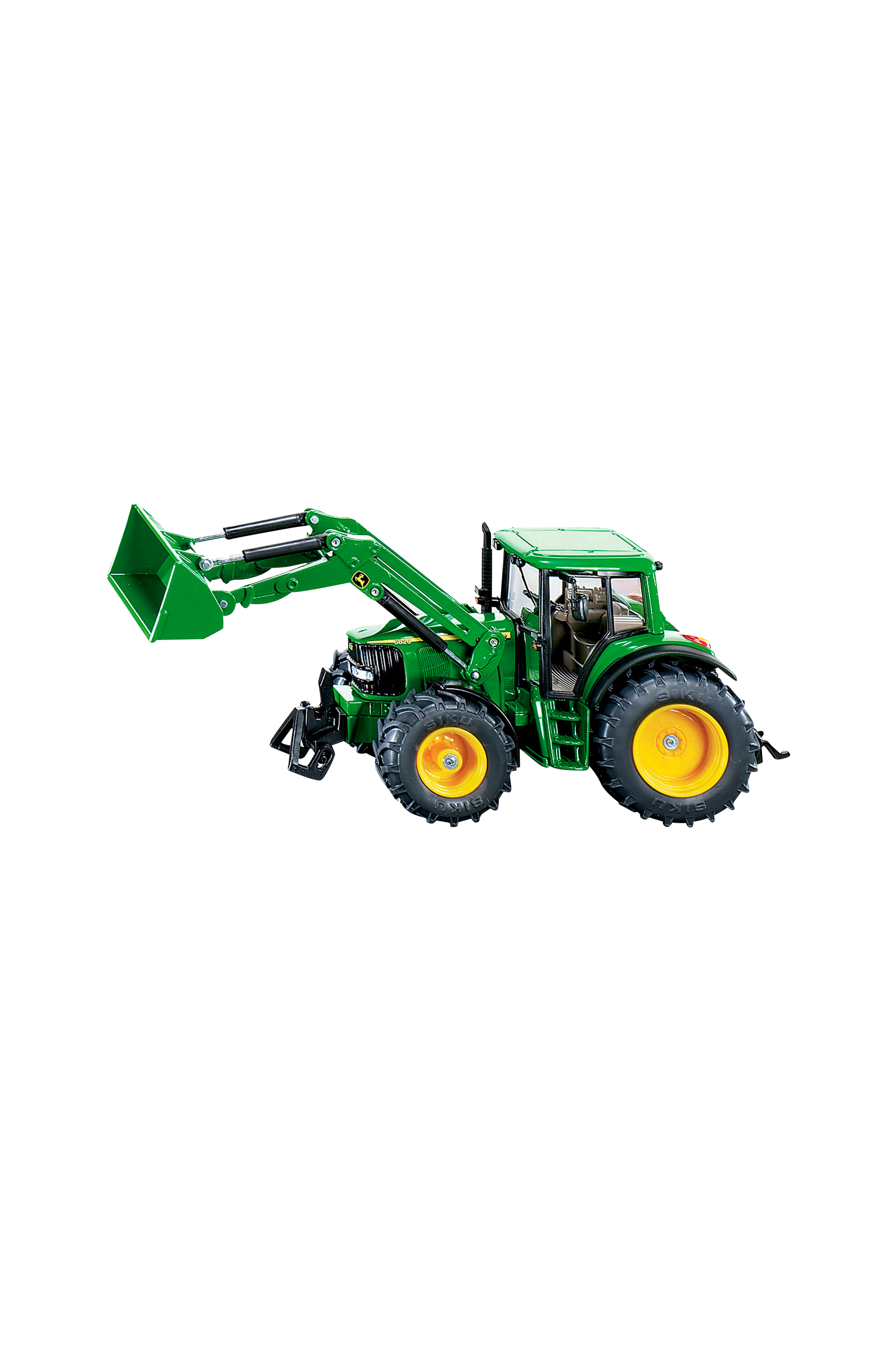 Detaljeret John Deere traktor med bevægelig frontlæsser til at lege og have det sjovt for både unge og gamle.