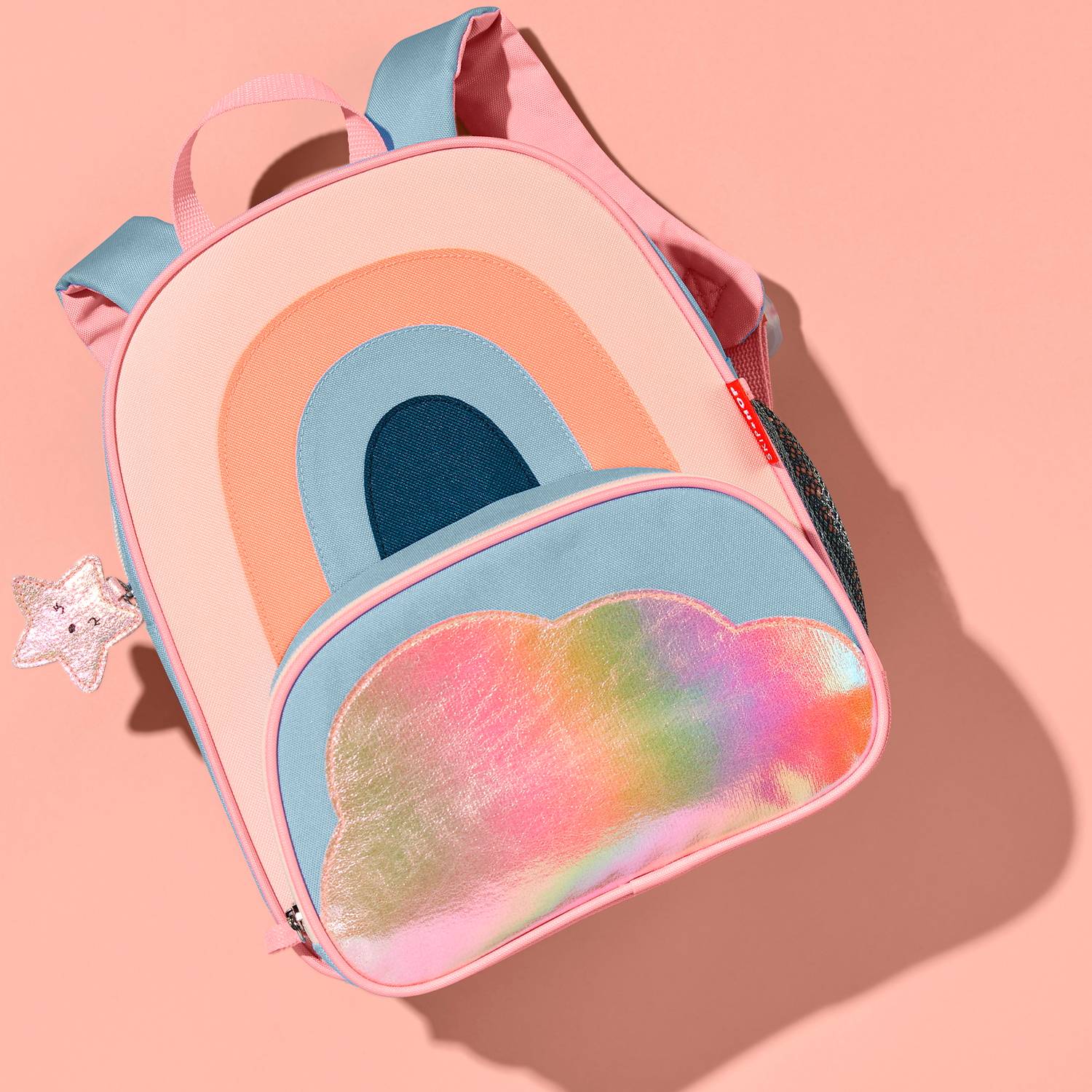 Smart lille rygsæk med stort hovedrum og lomme med lynlås på forsiden.