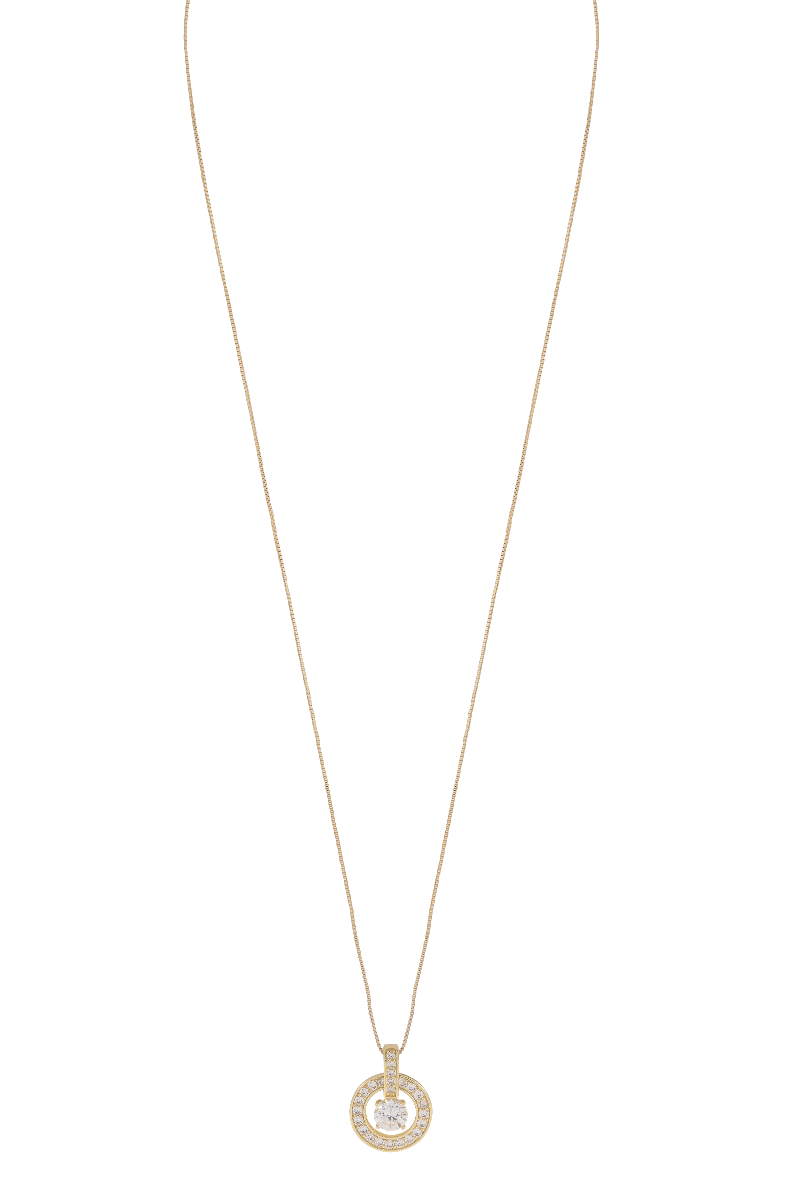 En smuk halskæde med en meget tynd kæde og et elegant vedhæng dekoreret med funklende sten. Længde 46 cm.Materiale: Guldpletteret messing, sten i Cubic Zirconia.