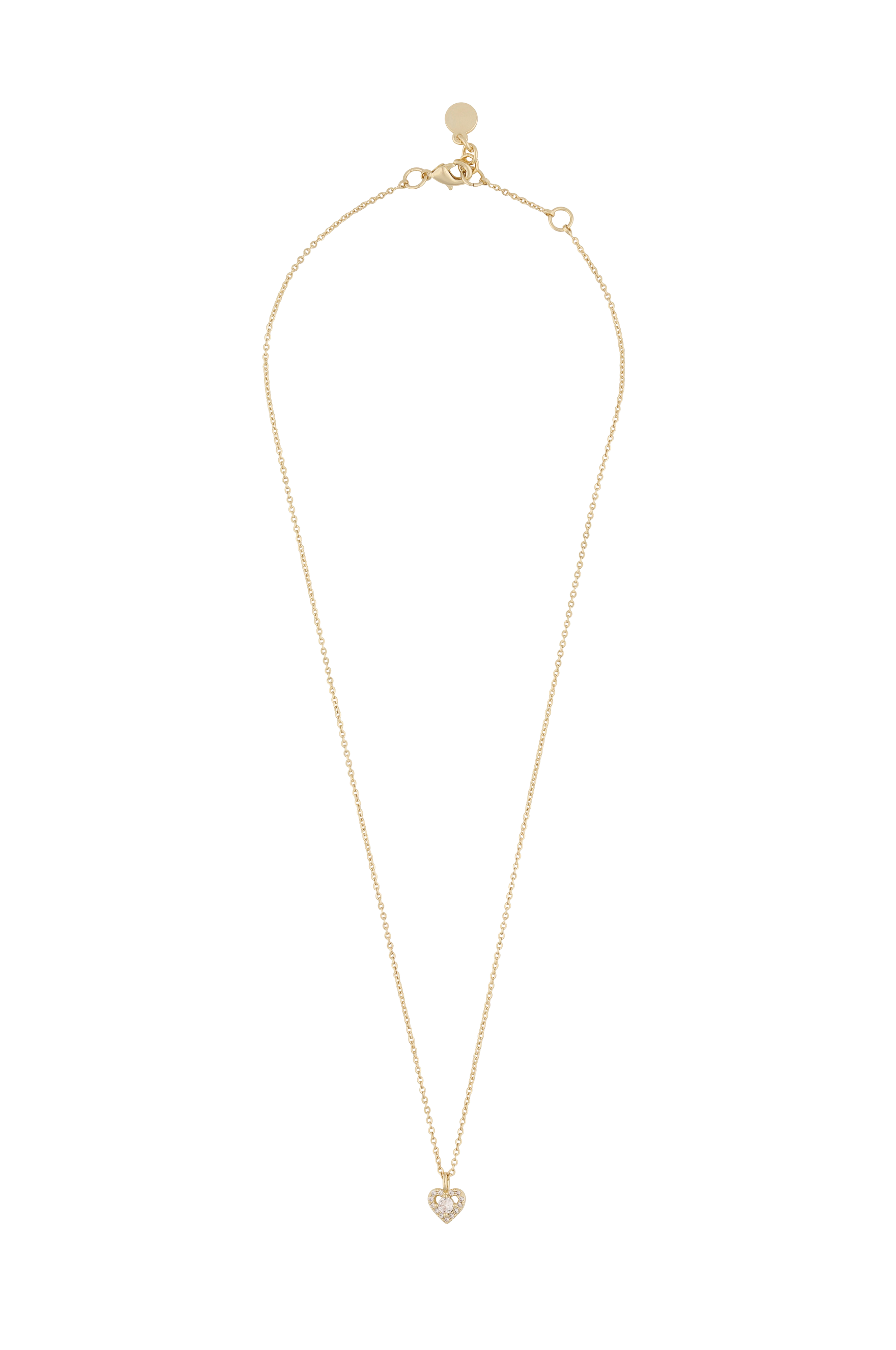 • Belagt kæde i messing• Hjerteformet vedhæng med små sten i kubisk zirkonia• Nikkeltestet• Længde 42 cm,vedhæng 7 mm