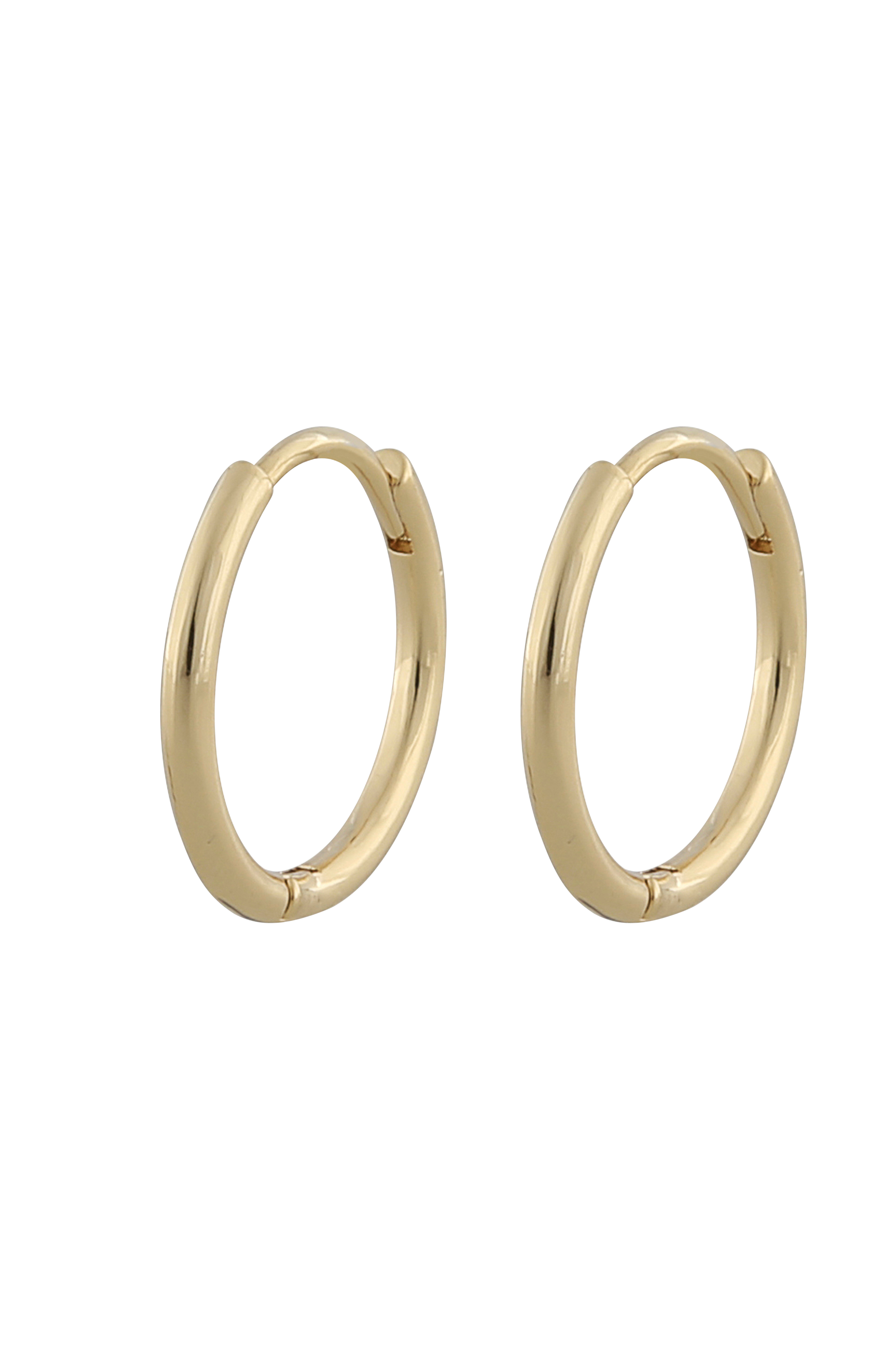 Øreringe i tynde, glatte ringe af guldpletteret messing. Nikkeltestet.Ø 14 mm