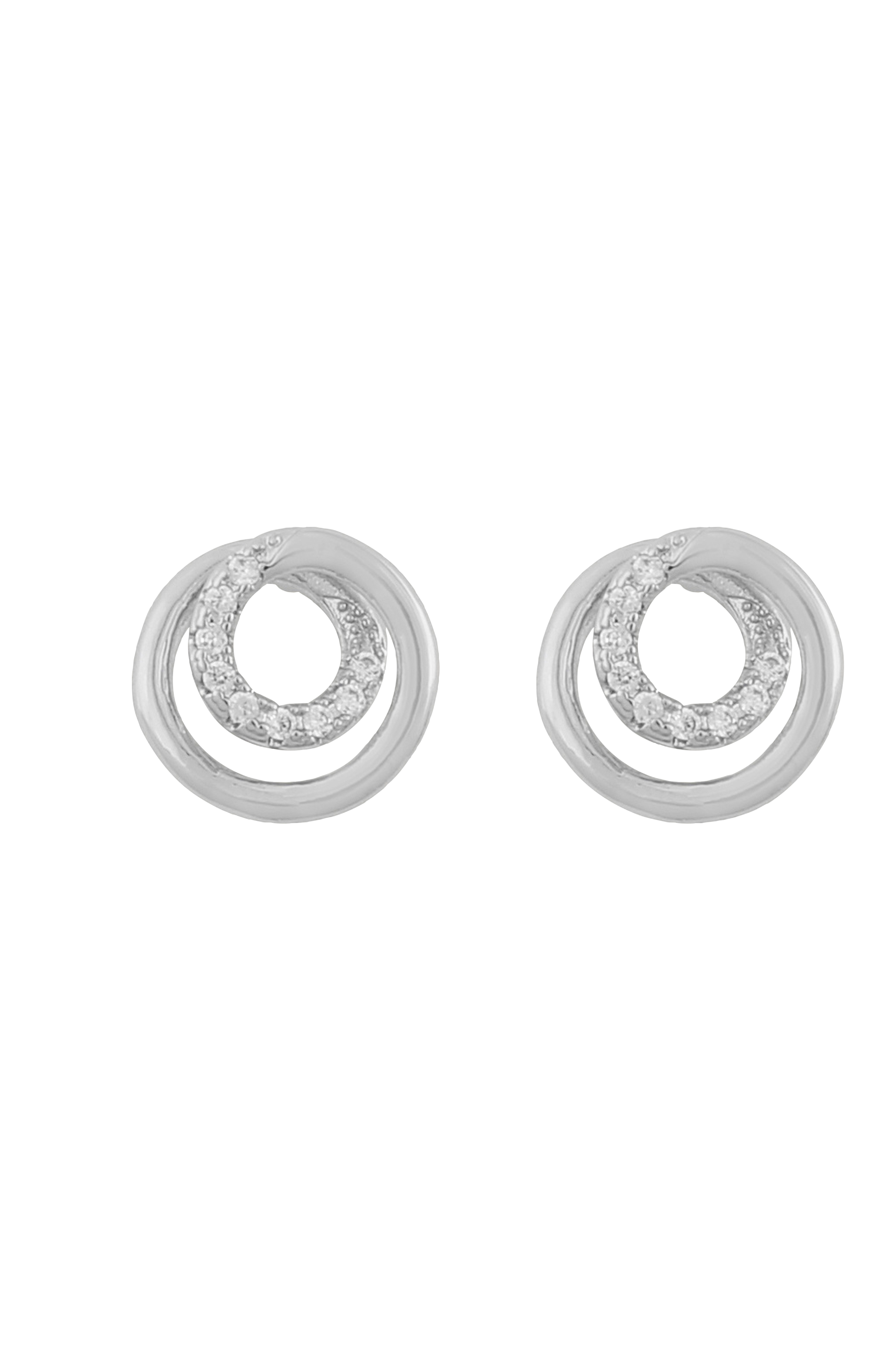 Klassiske små ørestikker i et stilrent design. Øreringene er snoede og har glitrende cubic zirconia-sten længst inde. Diameter 7 mm. Sølvpletteret messing. Nikkeltestet.