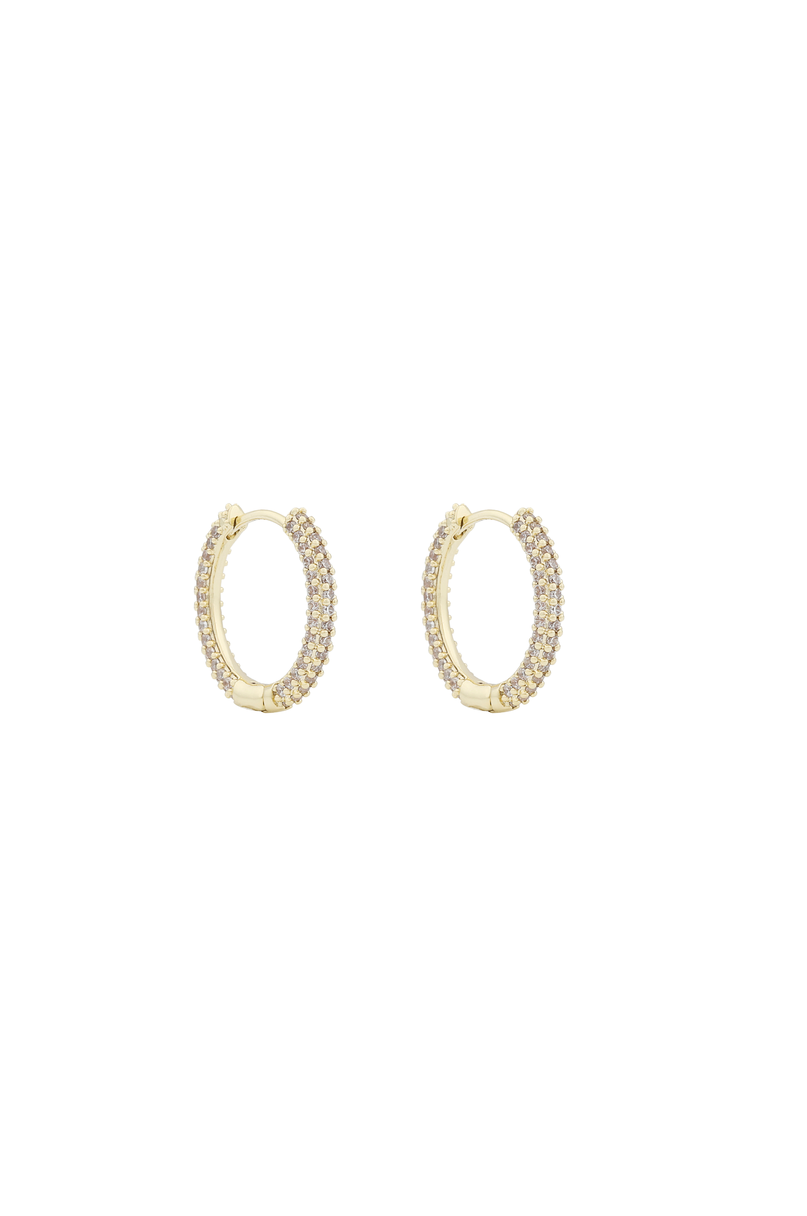 • Hoop øreringe i guldbelagt messing• Nikkelsikre• Dekoreret med cubiske zirkonia-sten• Diameter 18 mm