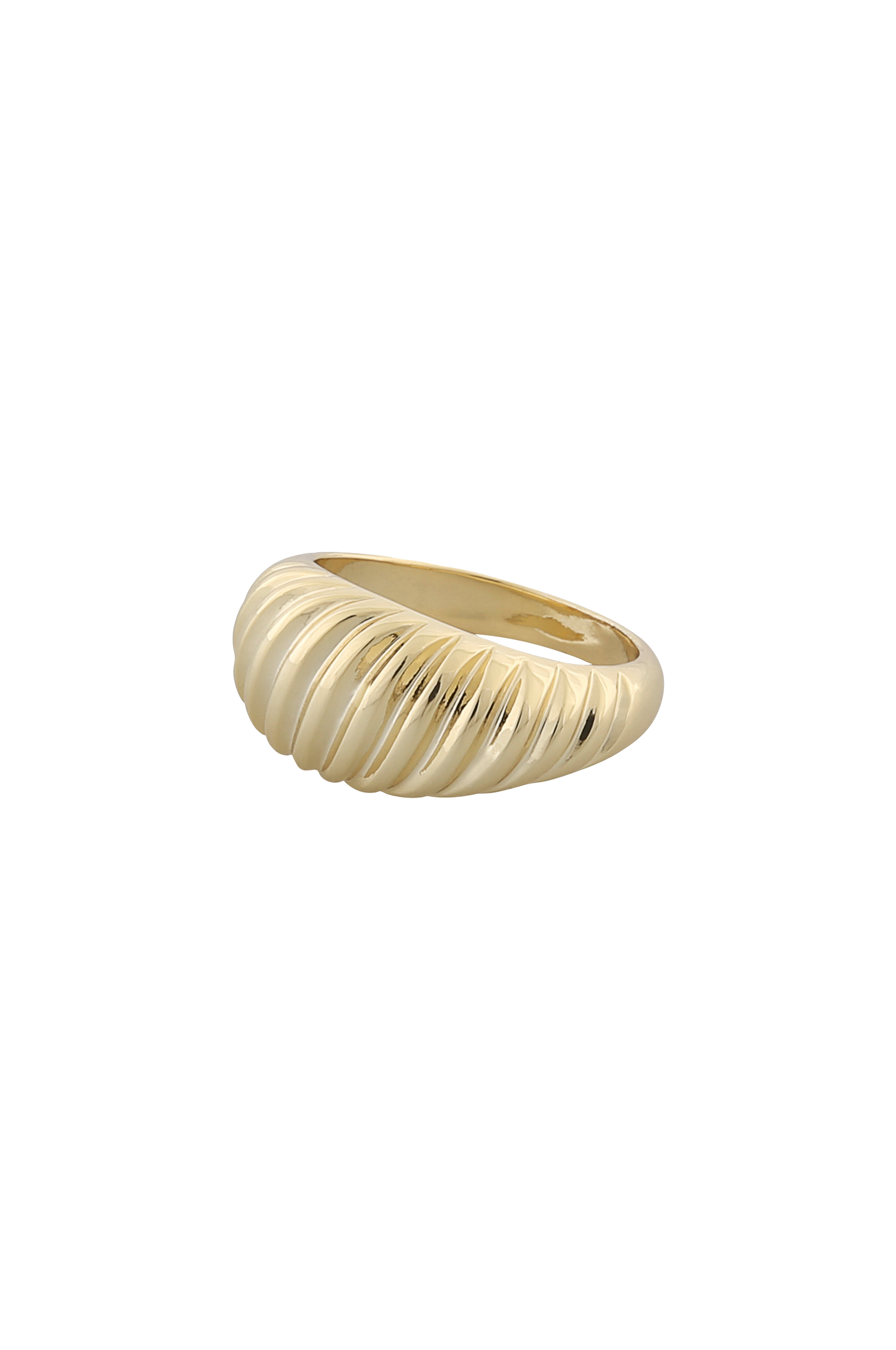 Tykkere statement-ring med dekorativt rillet overflade.Materiale: Guldpletteret messing.
