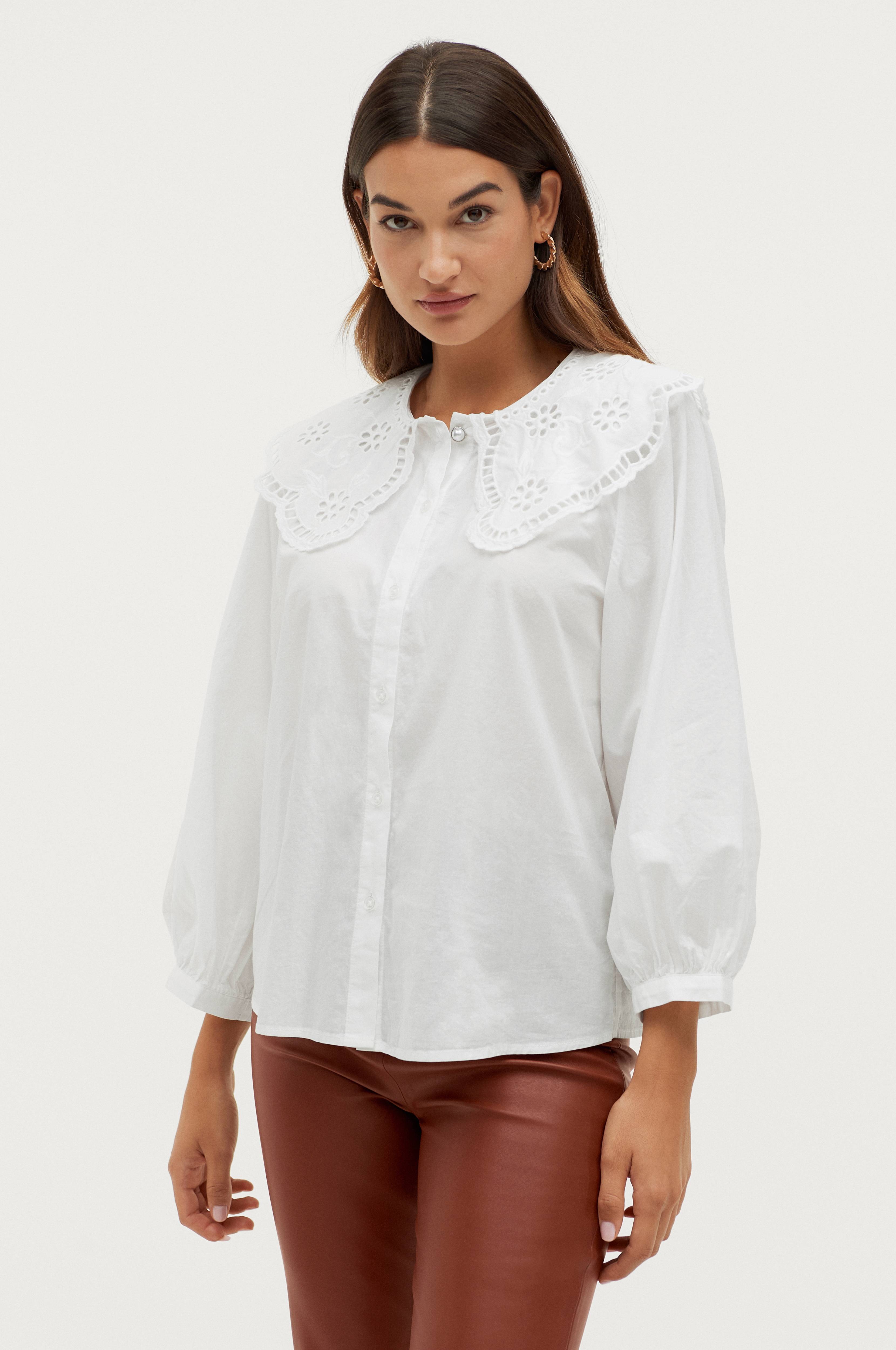 • Lige, uformel model• Stor krave i blonde• Bredt ærme med tynd manchet