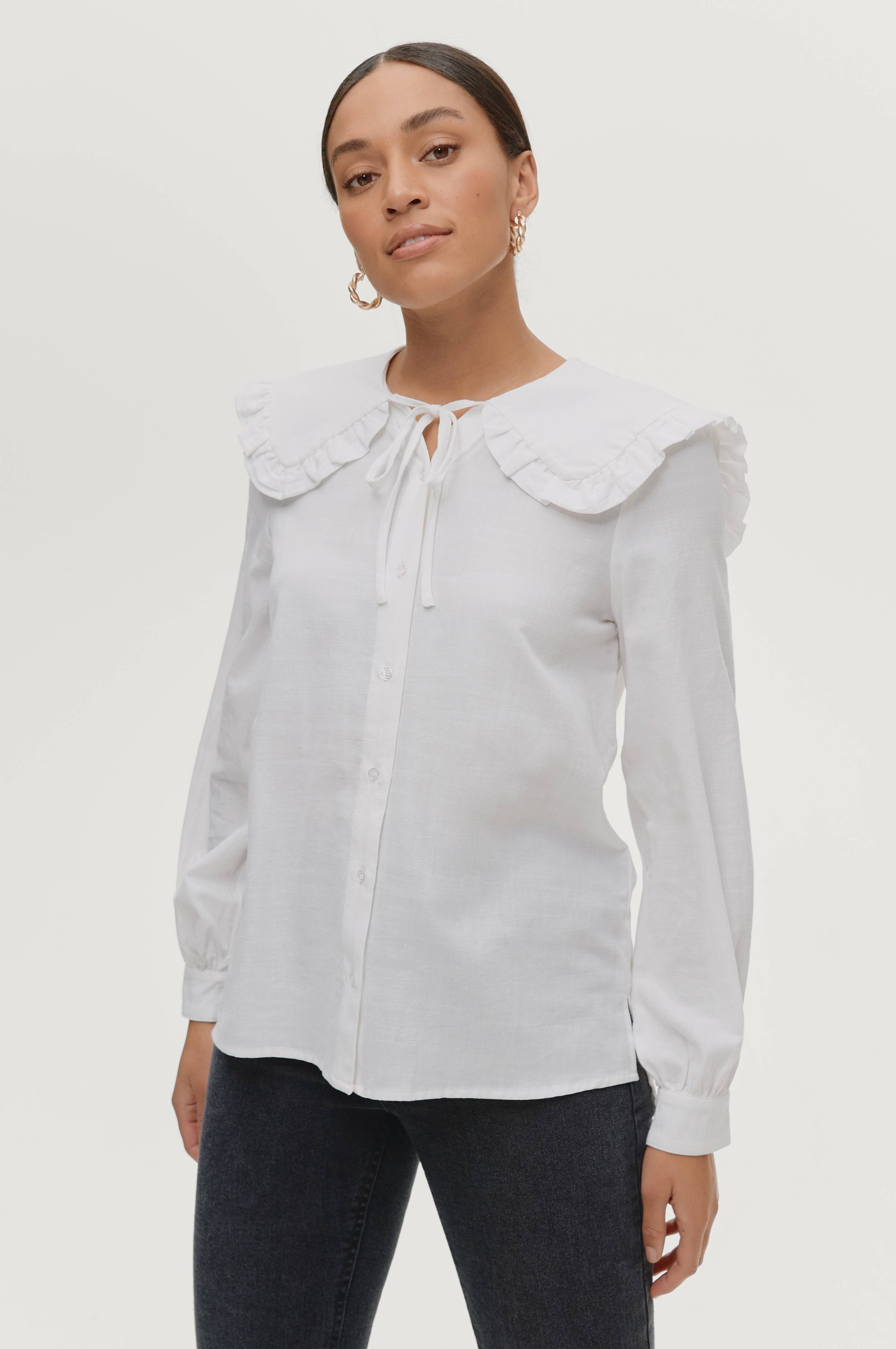 Bluse slFlash Shirt LS fra Soaked in Luxury i blød, vævet kvalitet. Knapper foran, stor flæsekrave og lange ærmer med manchet og knap i ærmekant. Bluse er noget længere bagpå og har kort slids i siderne. Løs pasform.