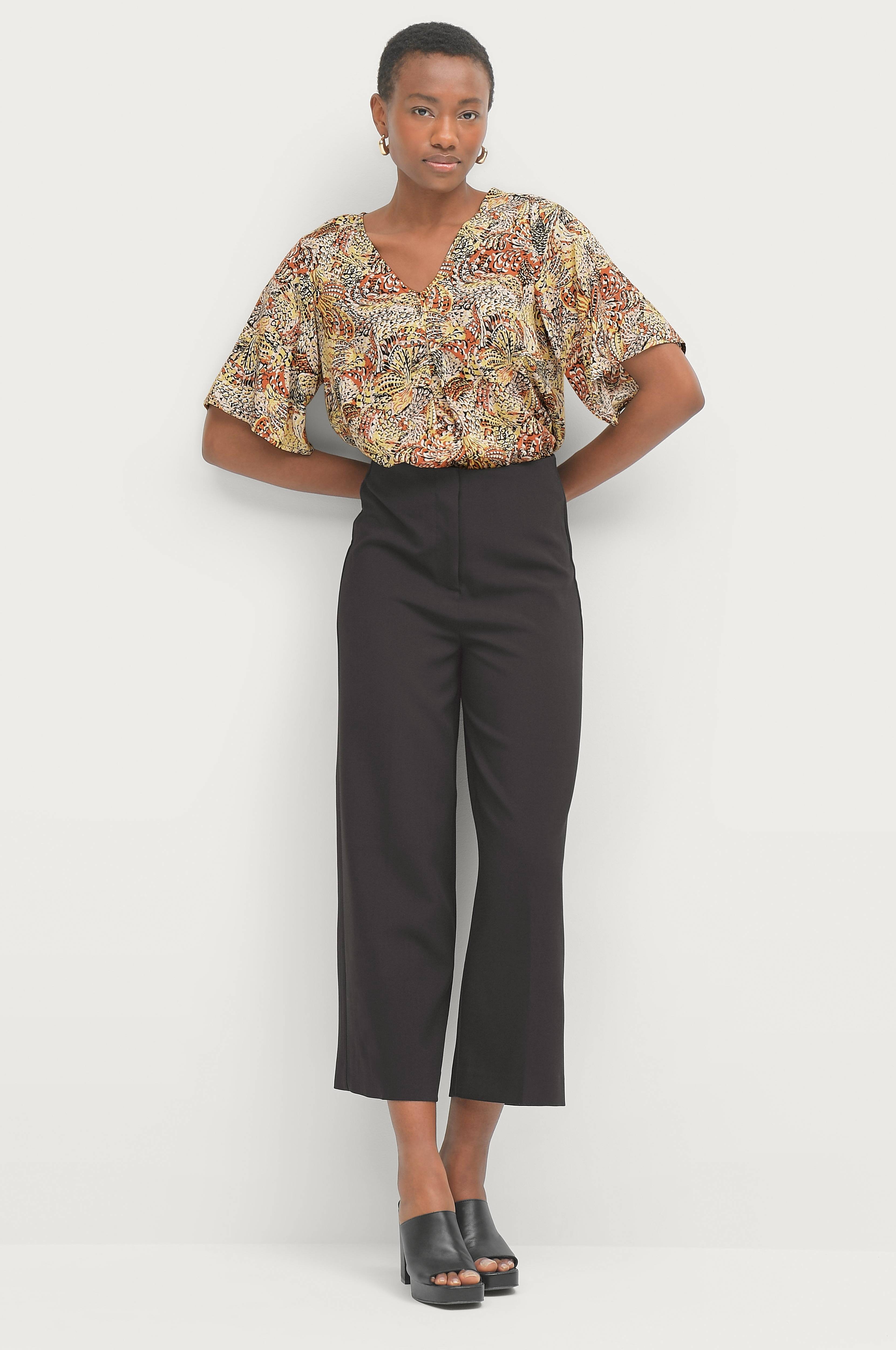 • Brede, læglængde bukser• Skjult elastisk bånd ved taljen• Klap- og lynlåslukning