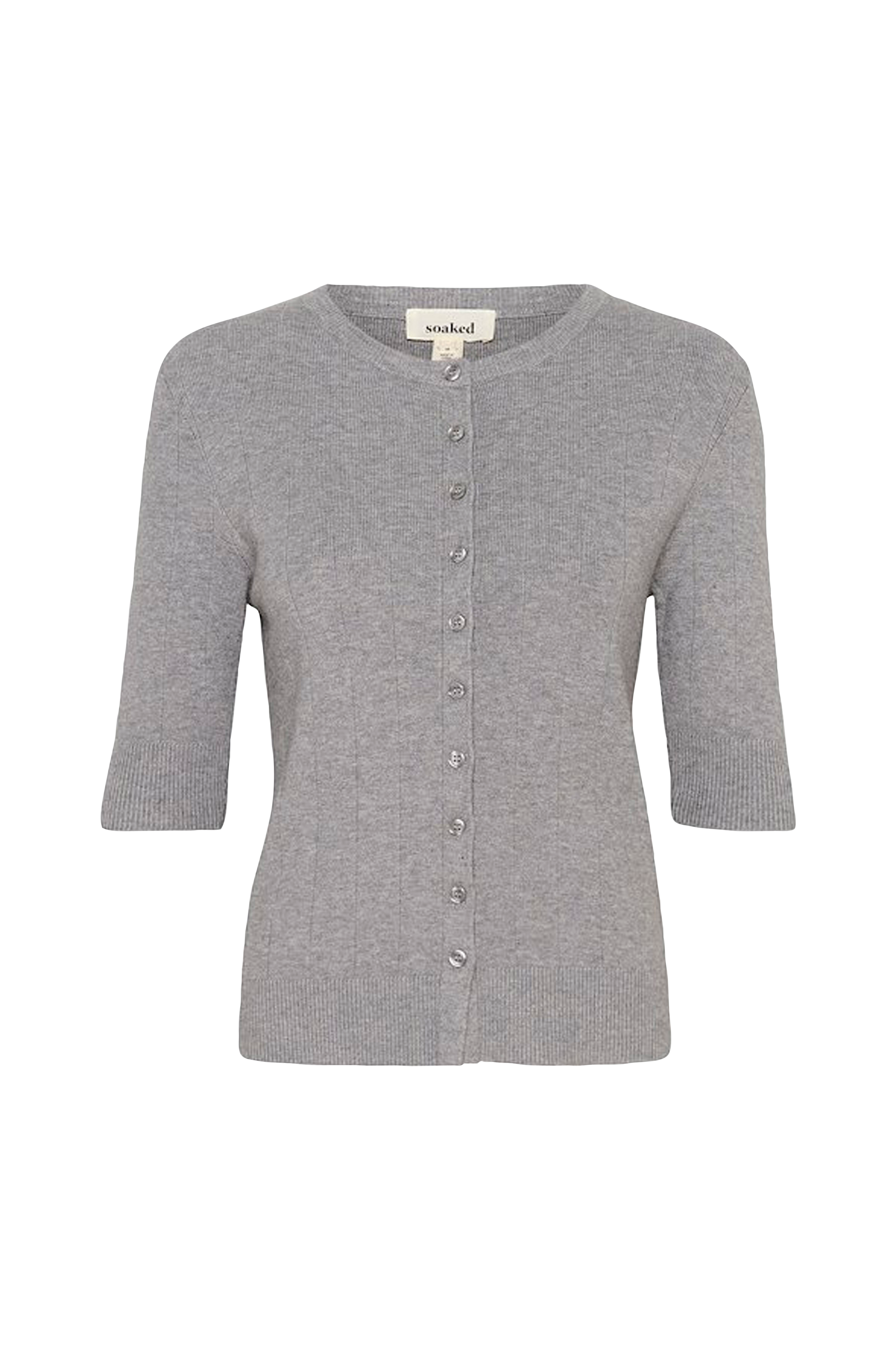 • Fintstrikket cardigan i viskoseblanding• Ribbet struktur• Korte ærmer• Rund, ribbet halsudskæring• Knaplukning• Ribstrik ved manchetterne og nederst