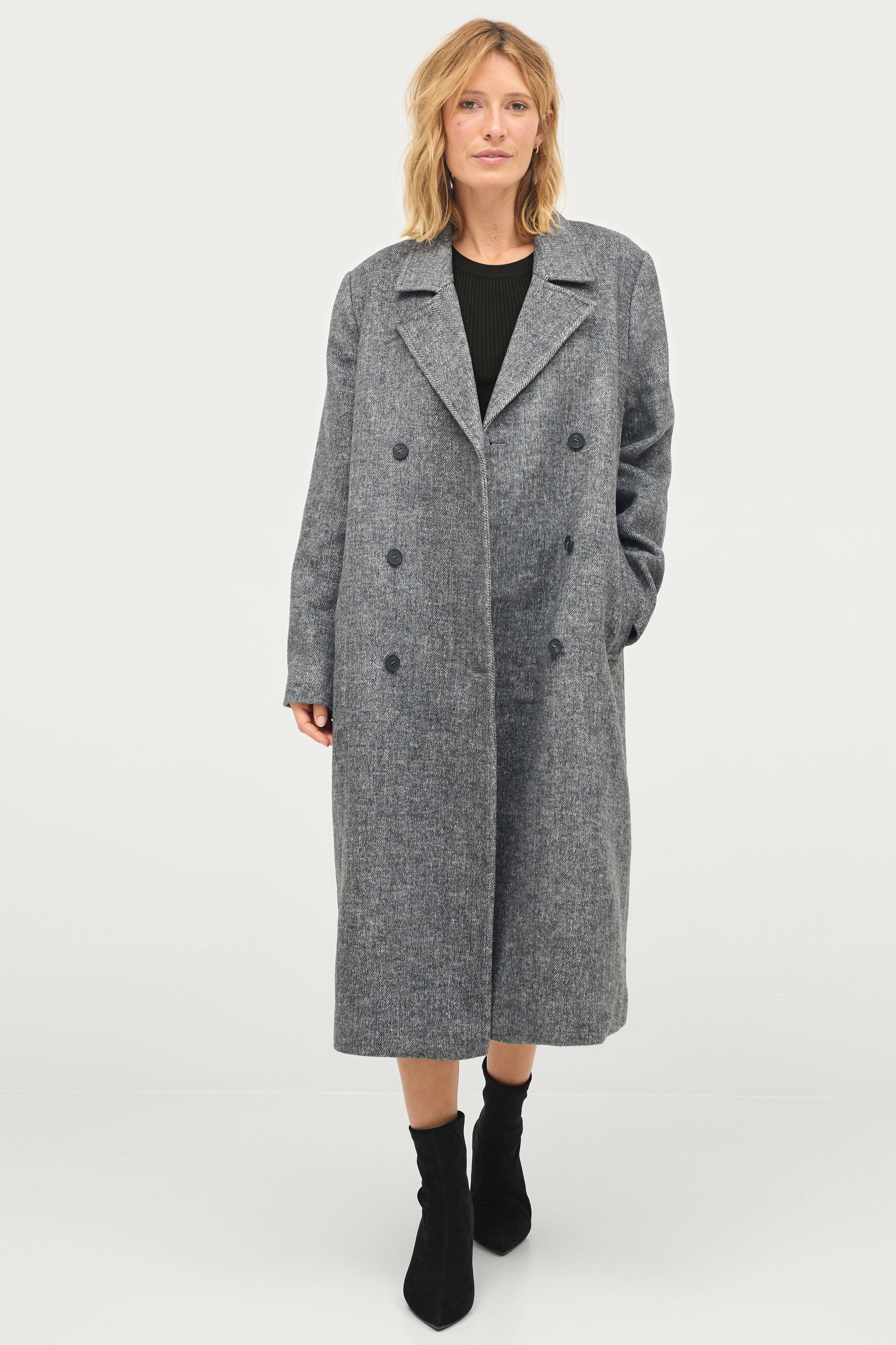 • Lige, stilren model• Dobbelt knaplukning• To lommer• Slids bagpå• Vævet for• Længde: 118 cm i størrelse XXL