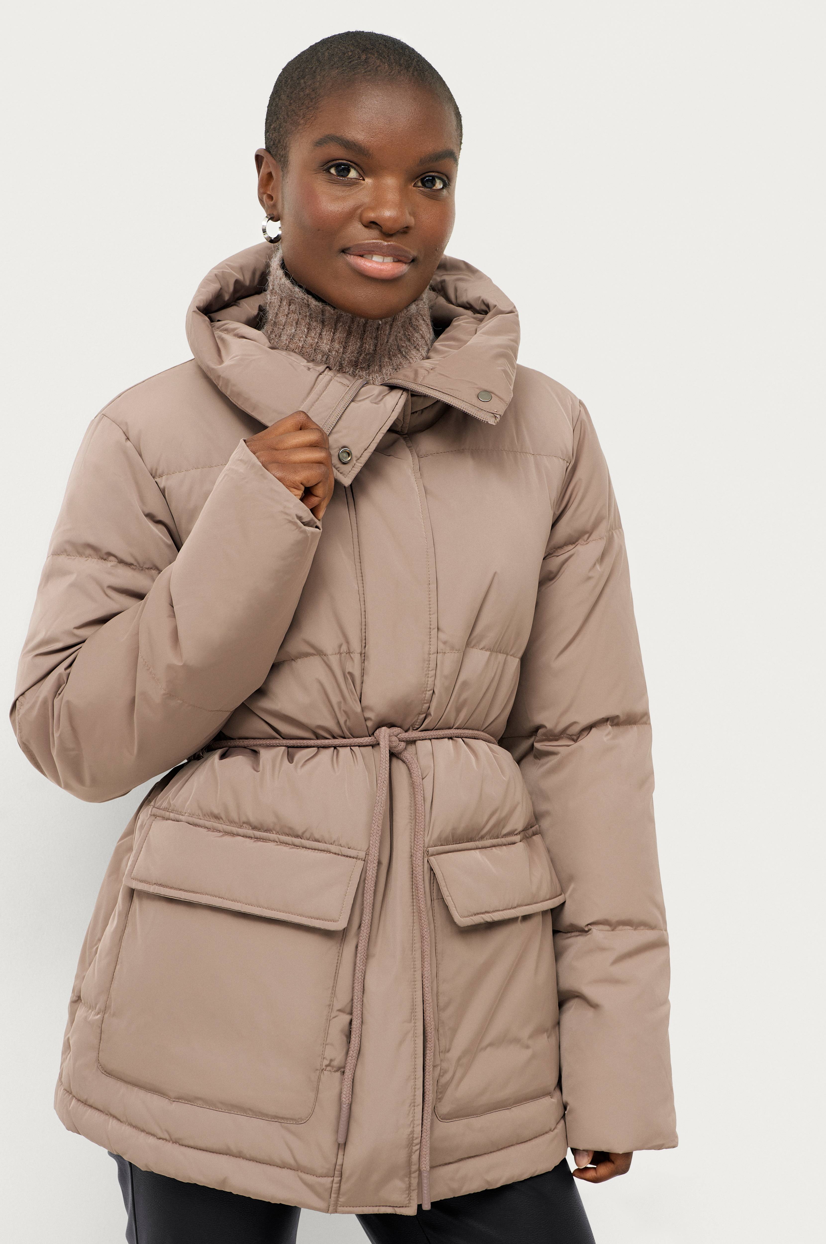 • Quiltet, foret jakke• Høj krave• Lynlås• Vindflap med trykknapper• To lommer med låg• Træksnørre ved taljen• Elastisk bånd ved manchetterne• Længde: 73 cm i størrelse S