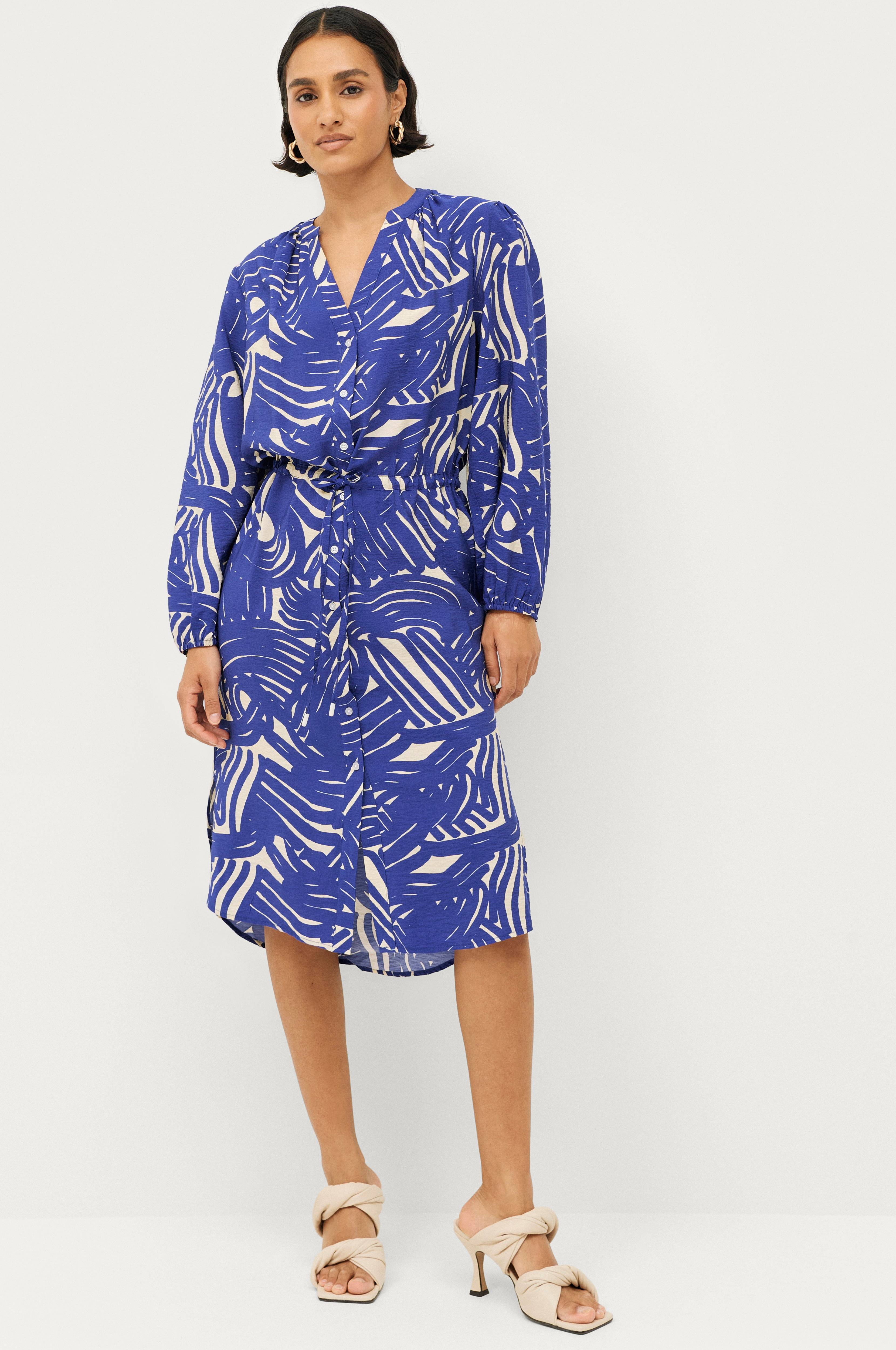 • V-udskæring• Knapper foran• Træksnørre ved taljen• Lange ballonærmer• Slidser i siderne• Længde: 114 cm i størrelse S