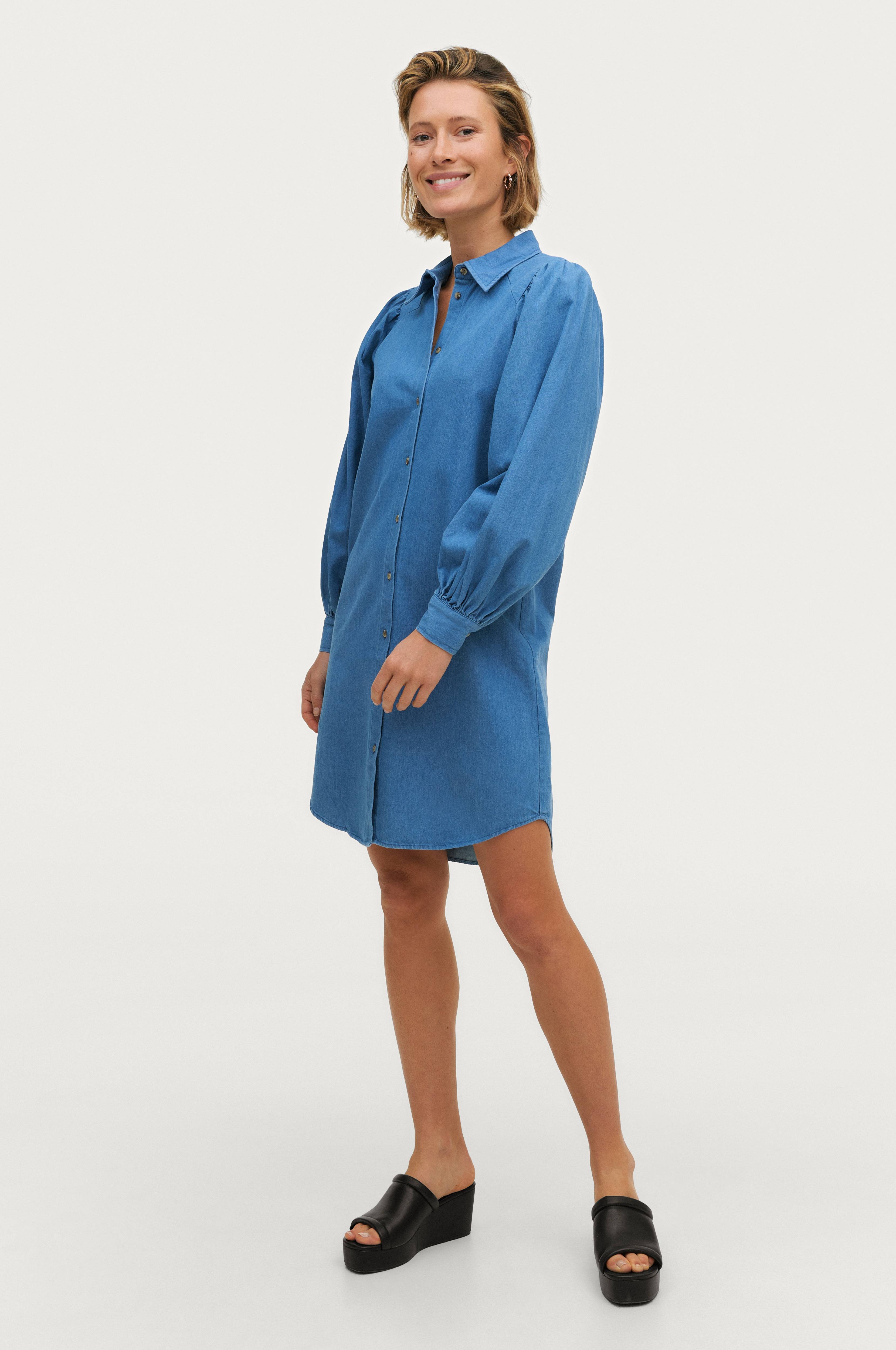 • Skjortekjole i denim• Gennemknappet model• Brede ballonærmer med samling på toppen• Manchet med en knap• Længde: 99 cm i størrelse S