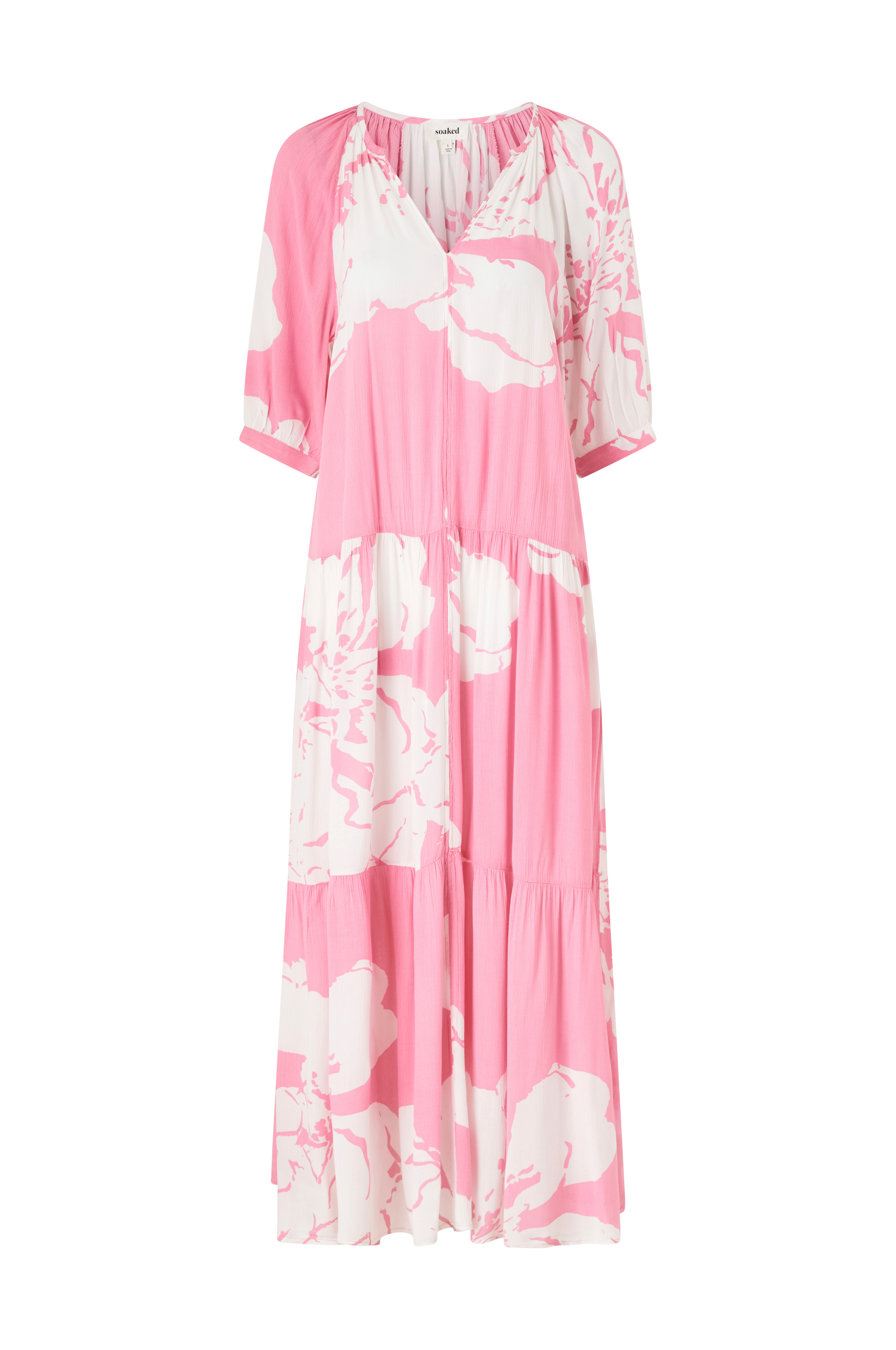 • Lang, mønstret kjole i viskose • V-udskæring • Halvlange ærmer • Rynket kvalitet • Længde: 140 cm i størrelse S • Produktet indeholder viskose fra Livaeco by Birla Cellulose™, en syntetisk cellulosefiber af træmasse der kommer fra kontrolleret og ansvarsfuldt skovbrug.