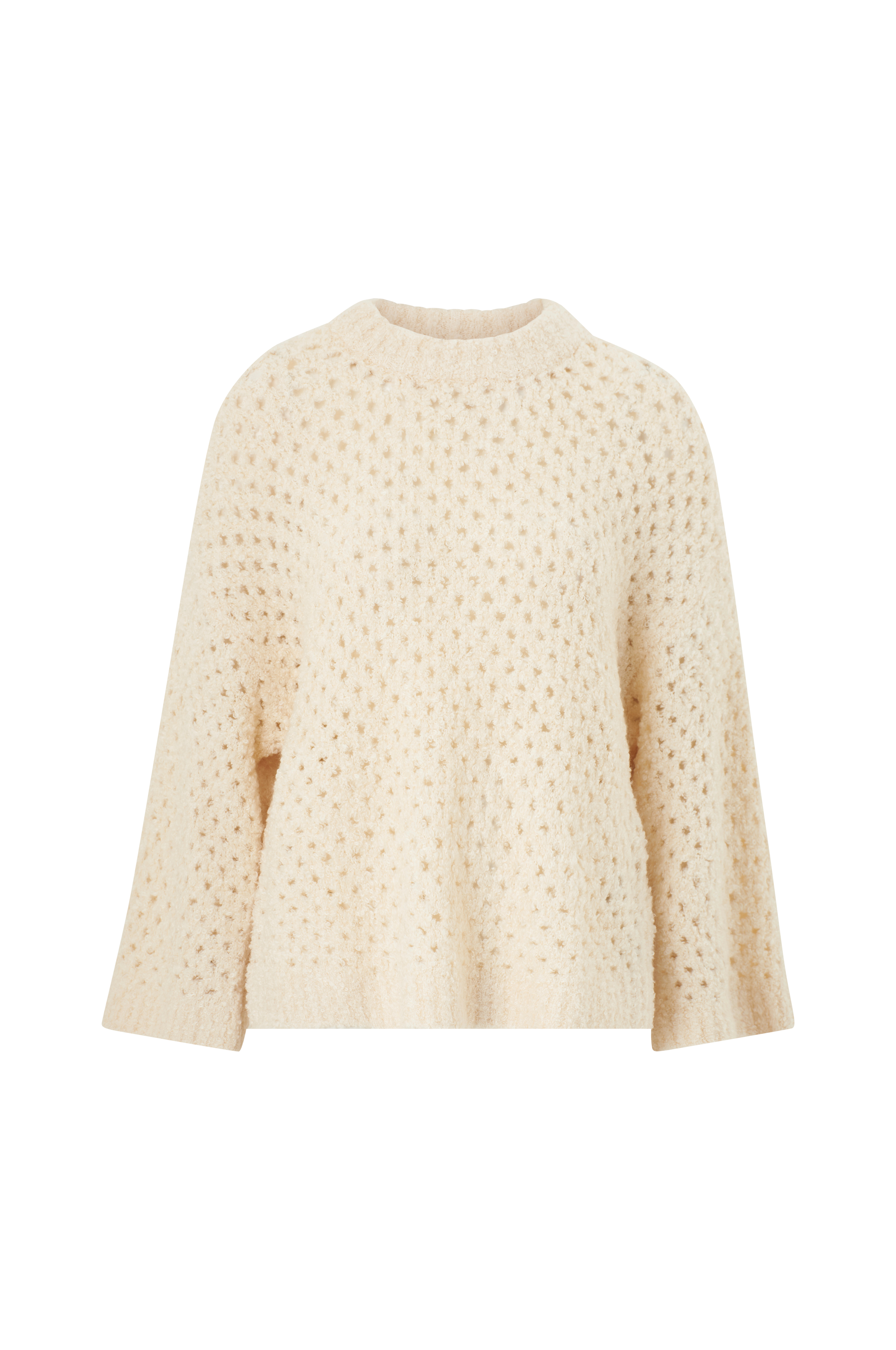 • Strikket, blød Pullover med hulmønster• Løs pasform• Rund halsudskæring• Nedsænkede skuldre• Ribstrik ved manchetterne og nederst
