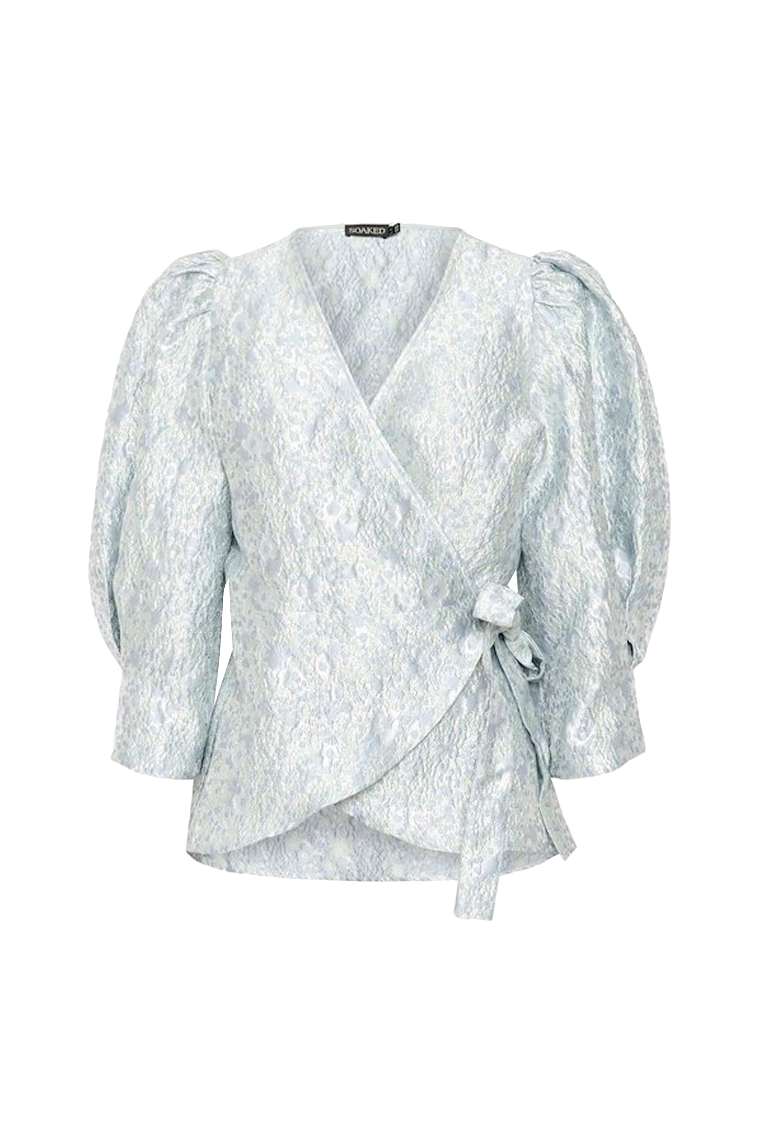 • Figurformede, jacquardvævet model• Bindebånd i siden• Bredt, 3/4 langt ballonærme