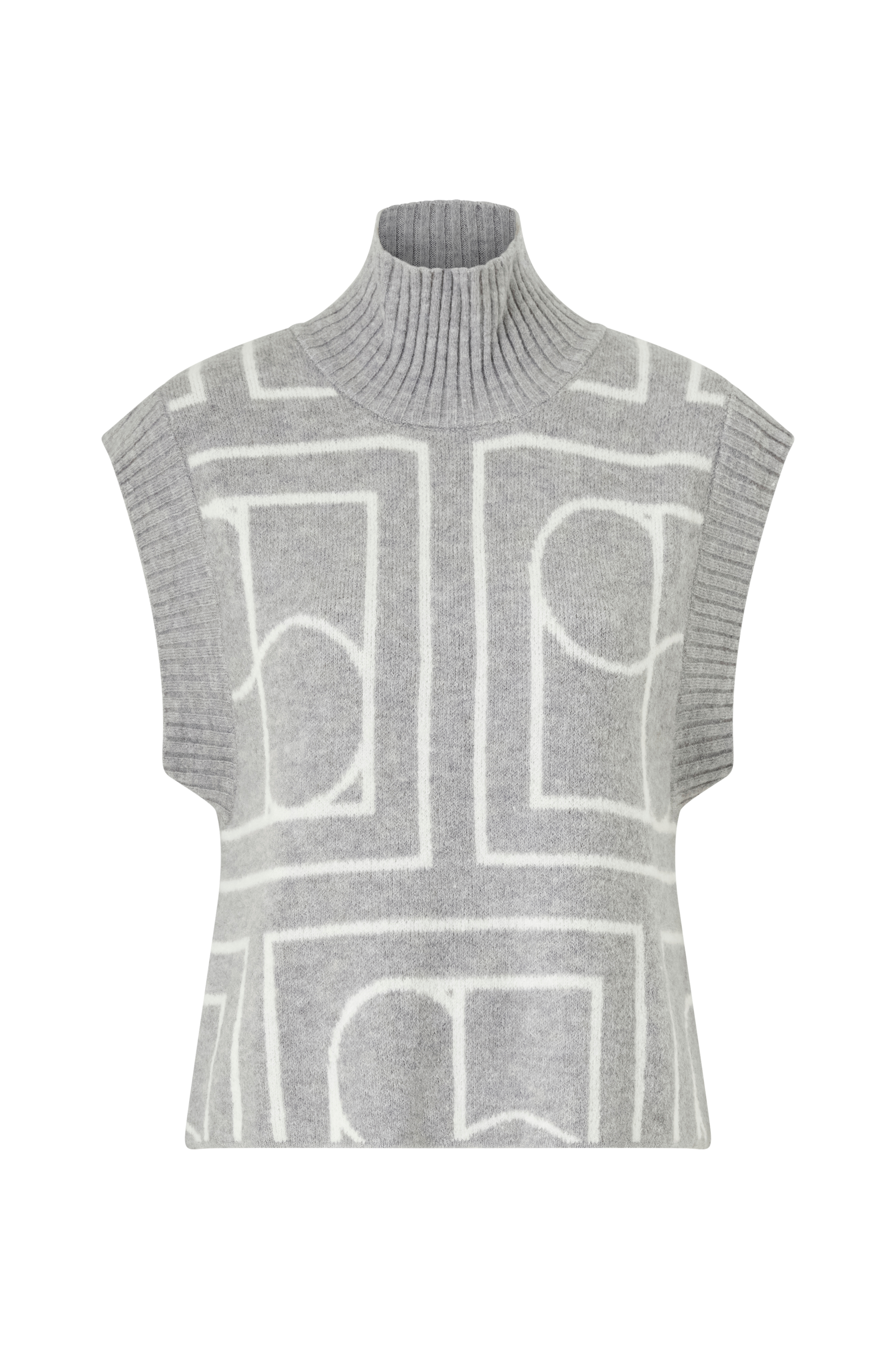 • Fintstrikket, ærmeløs slipover i blødt materiale• Strikket mønster• Ribstrikket, høj halsudskæring• Ribstrik omkring ærmeåbningerne