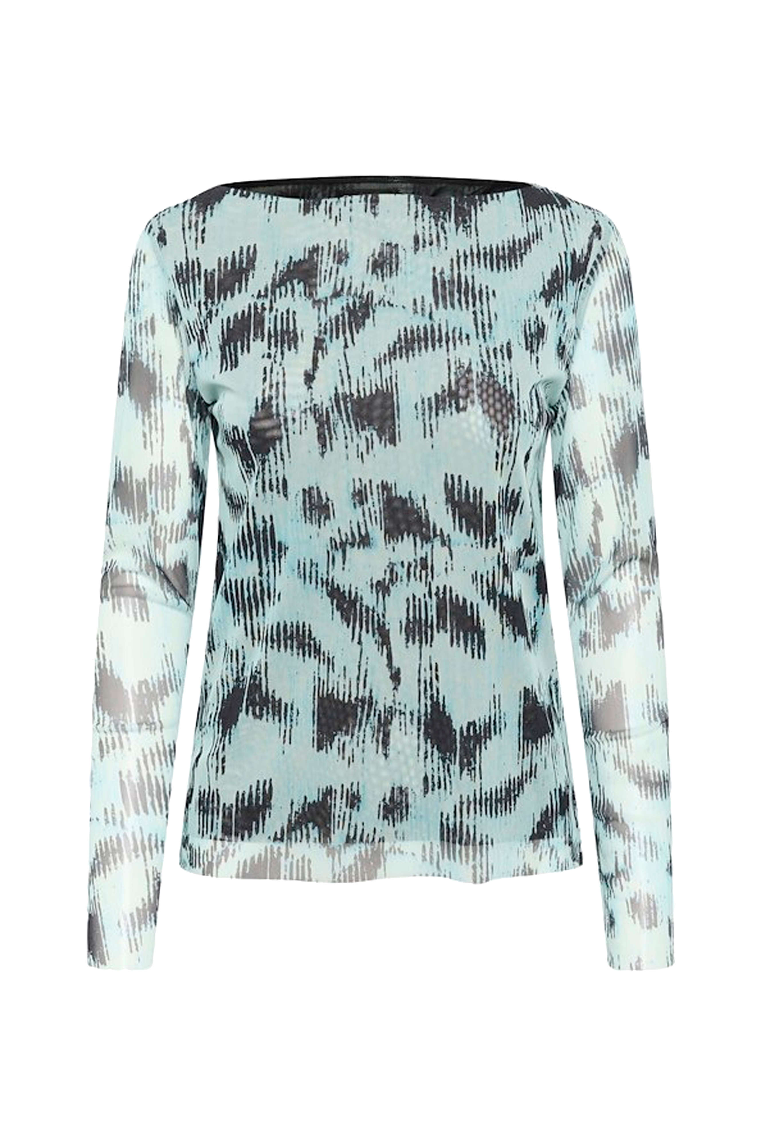 • Top i mønstret mesh• Bådudskæring• Lange, transparente ærmer• Tyndt meshfor