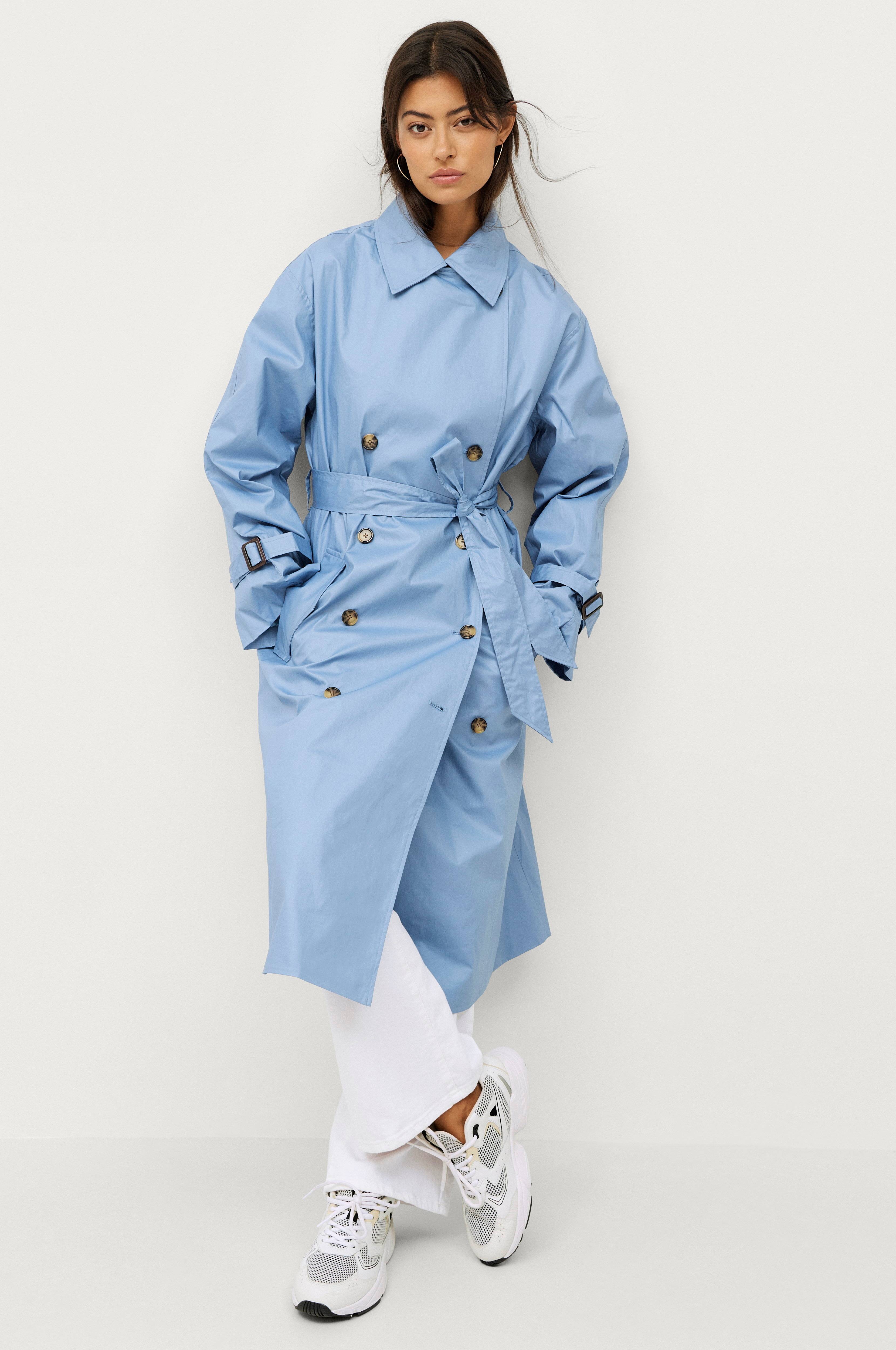 • Trenchcoat med belagt overflade• Dobbeltbrystet model• To lommer• Aftageligt bindebælte ved taljen• Slids nede bagved• Længde: 114 cm i størrelse S