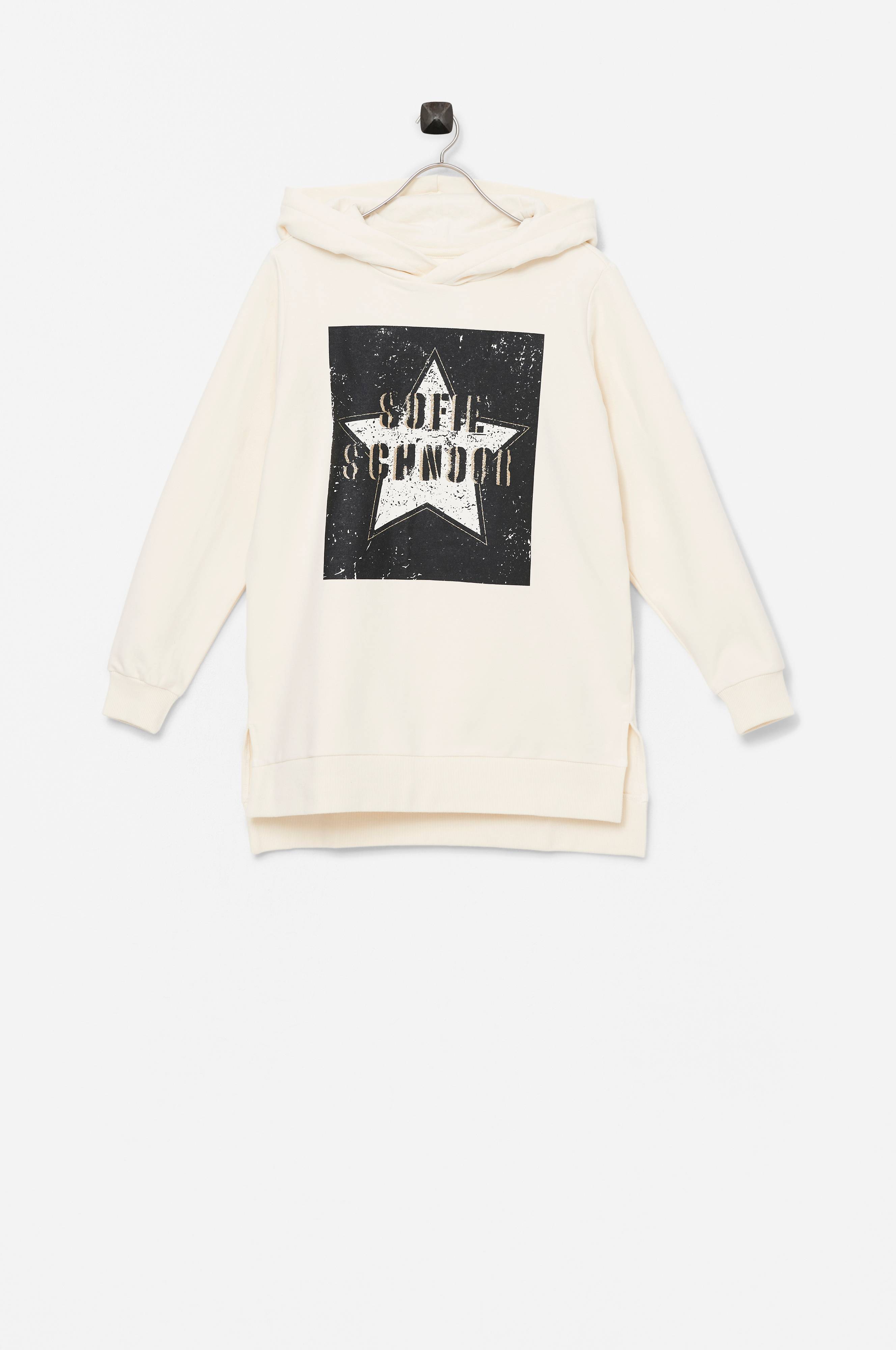 • Blød børstet inderside• Foret hætte• Tryk foran med guldglimmer• Ribmanchetter ved manchetterne og nederst