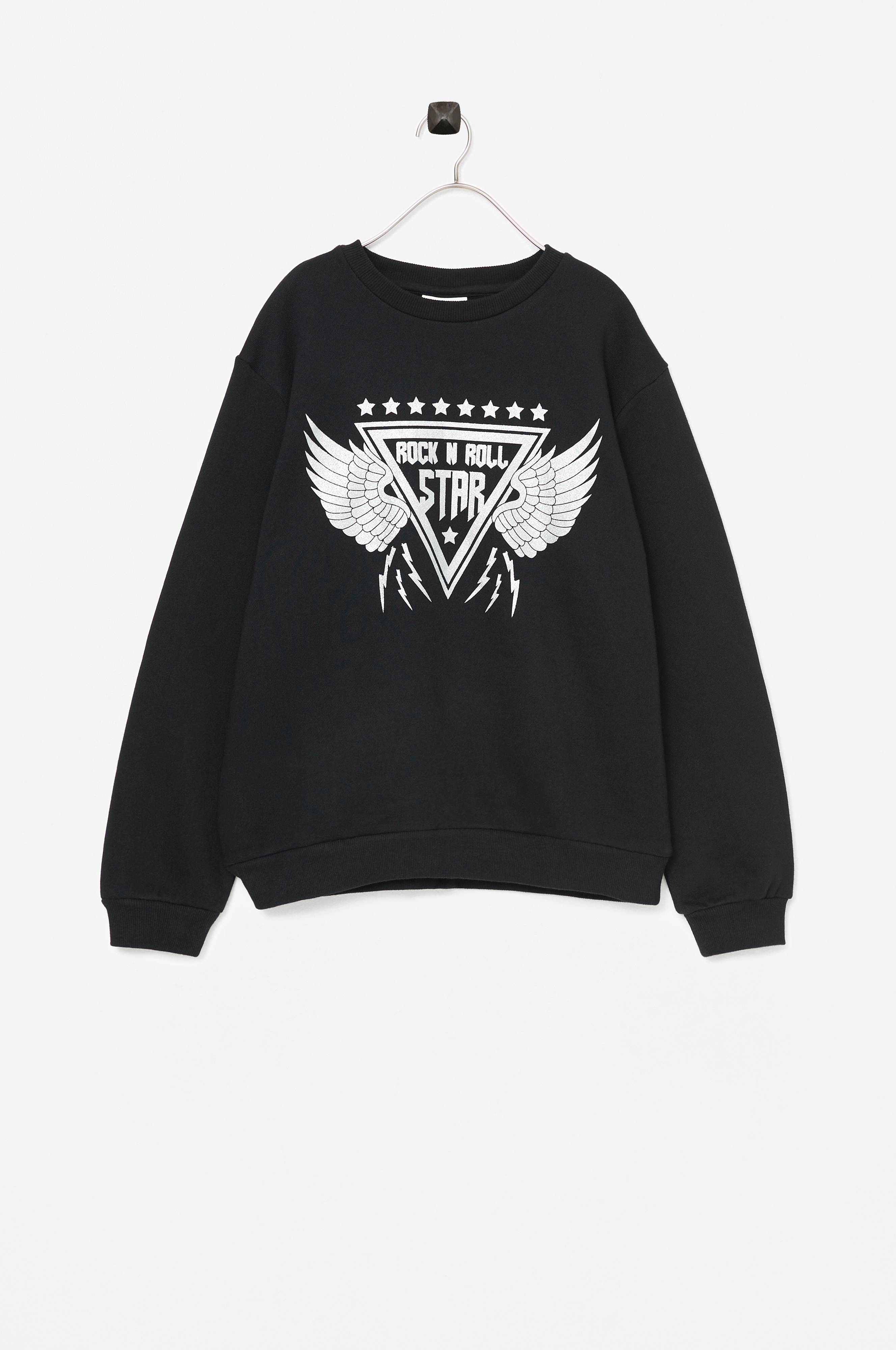 Sweatshirt med glitrende print foran. Rund halsudskæring med ribkant. Rib i ærmekant og kanten forneden.