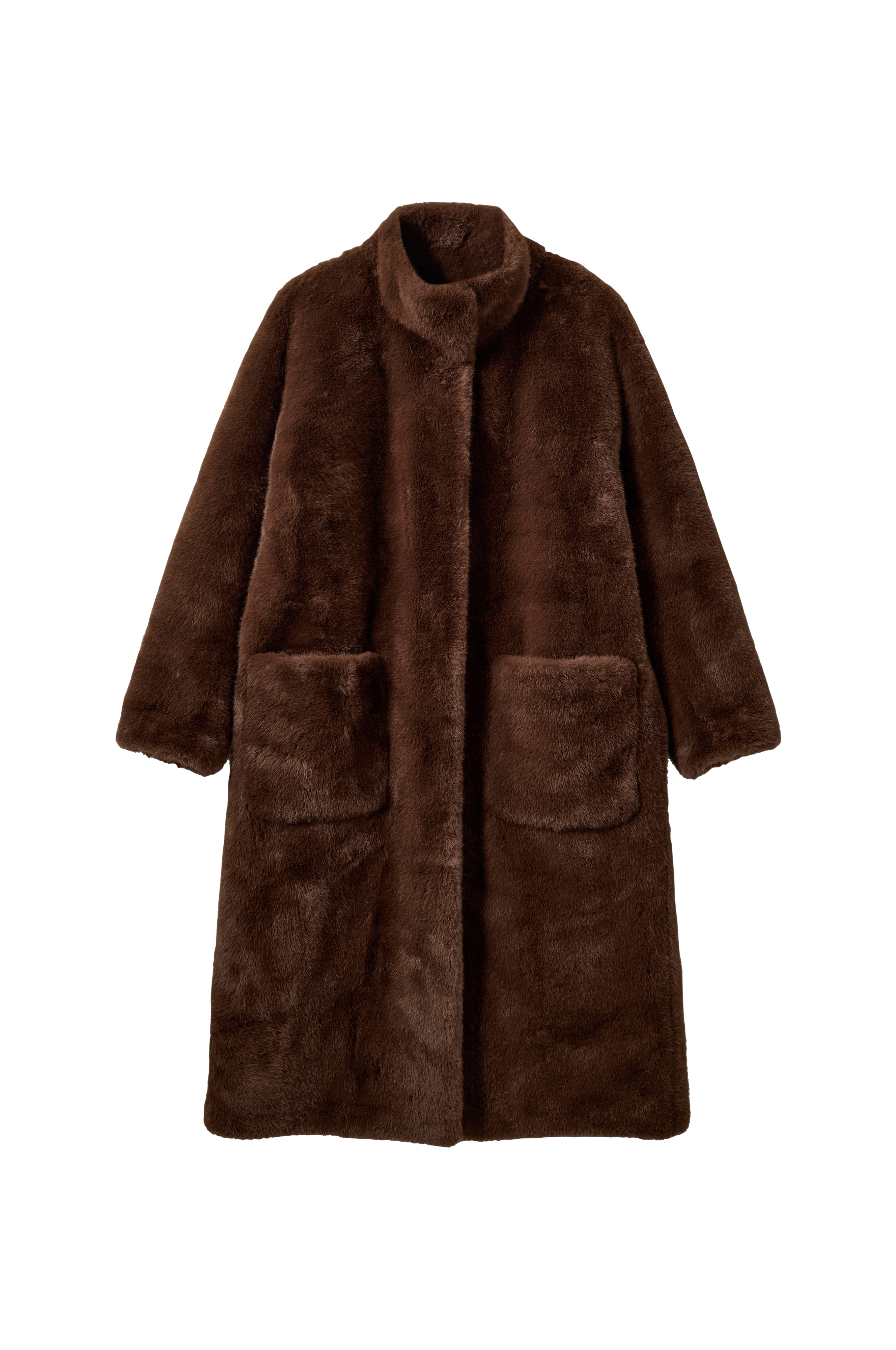 • Frakke i kunstskind• For i imiteret læder• Krave• Hægtelukning• To forlommer• Afslappet pasform