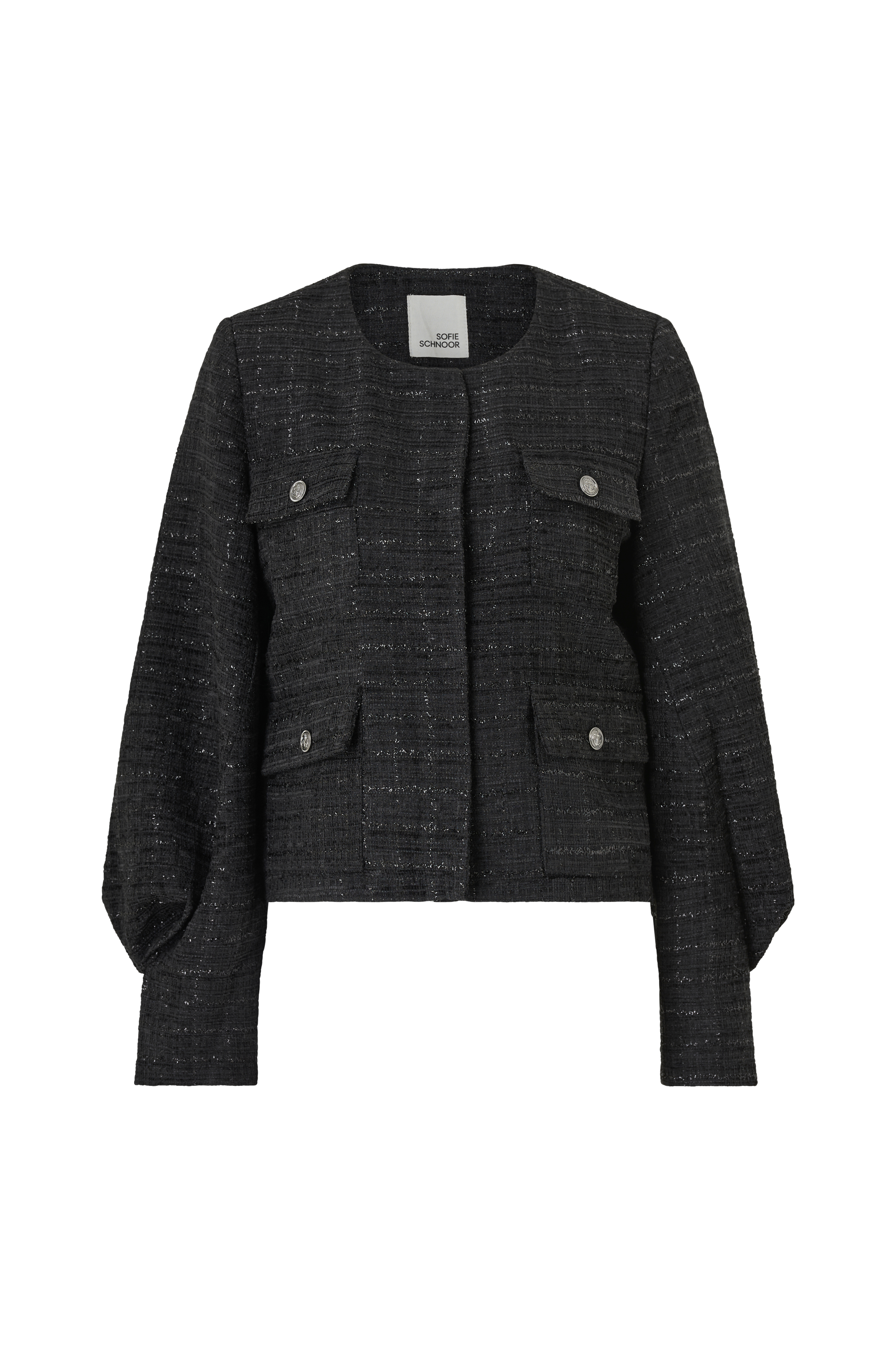 • Stof med struktur med glitrende detaljer• Uden krave model med rund hals• Fire lommer med knapbare lommelåg• Længde: 54 cm i størrelse 36
