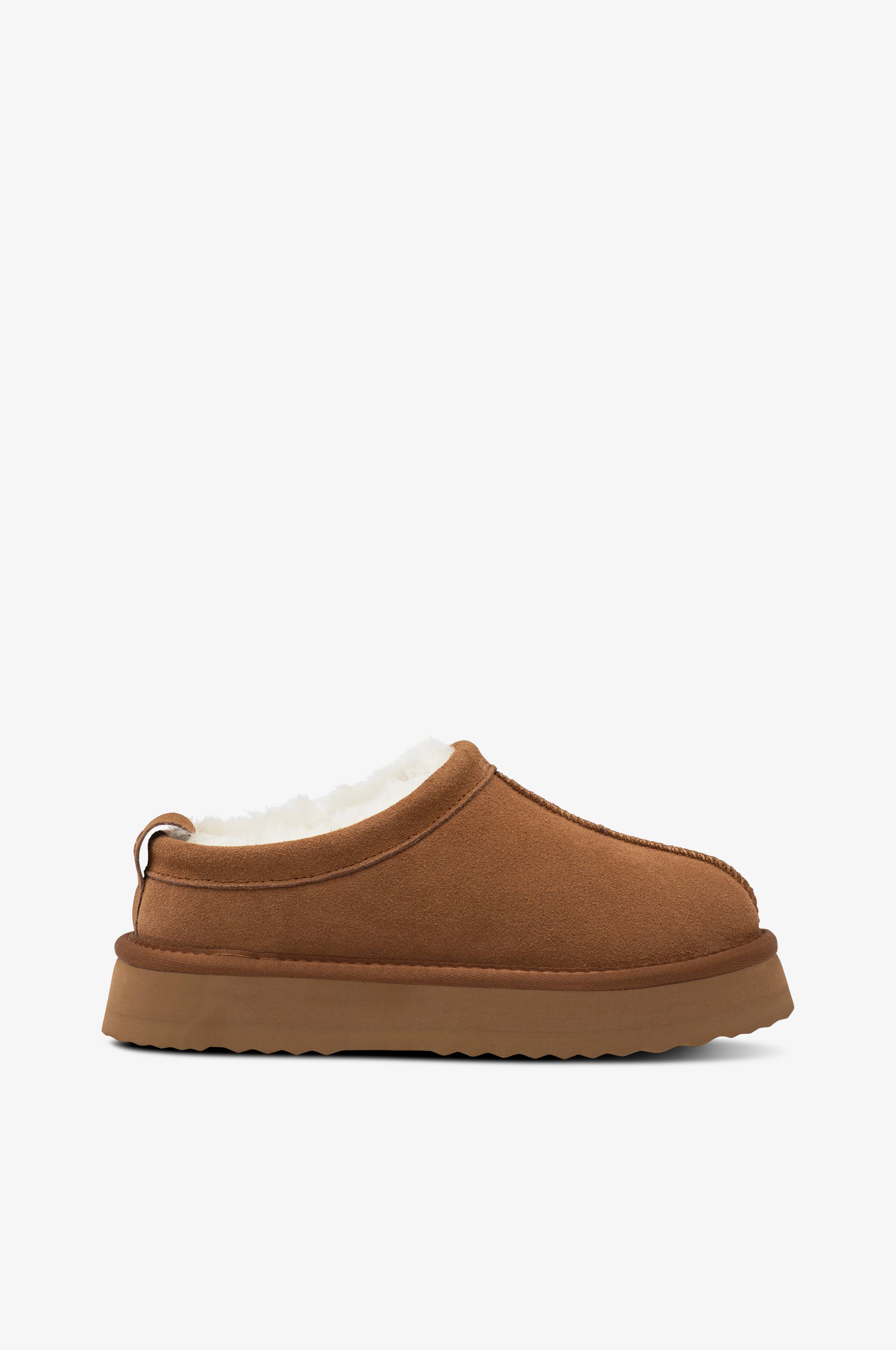 • Fremstillet af blødt ruskind• Slip-on design• Blødt for i fåreuld• Høj sål i en blanding af EVA og gummi• Sålhøjde: 3 cm