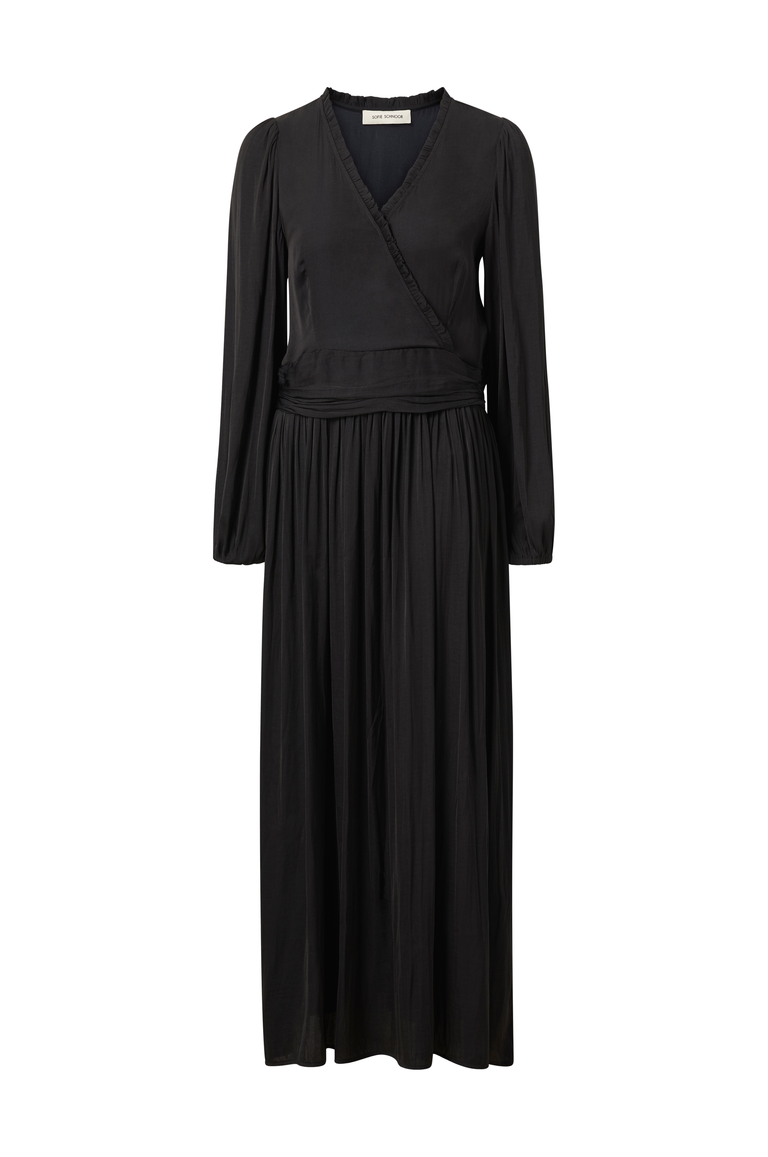 • Figurformede model• Slå-om design på toppen• Draperet talje• Bredt ærme med elastisk manchet• Længde: 140 cm i størrelse 36