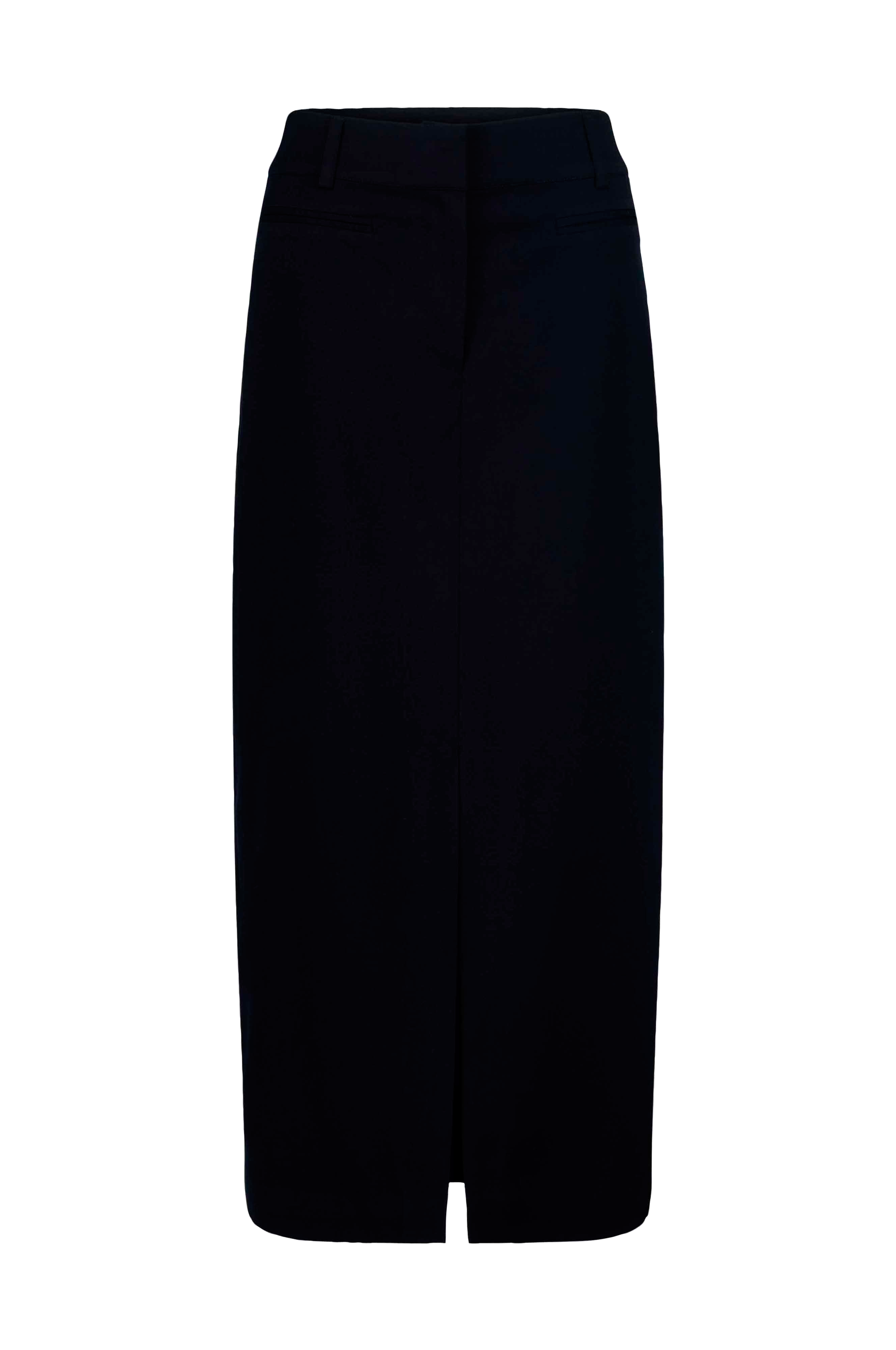 • Lang, lige model• Snydelommer foran og bagpå• Høj slids foran• Hægtelukning• Vævet for• Længde: 94 cm i størrelse 36