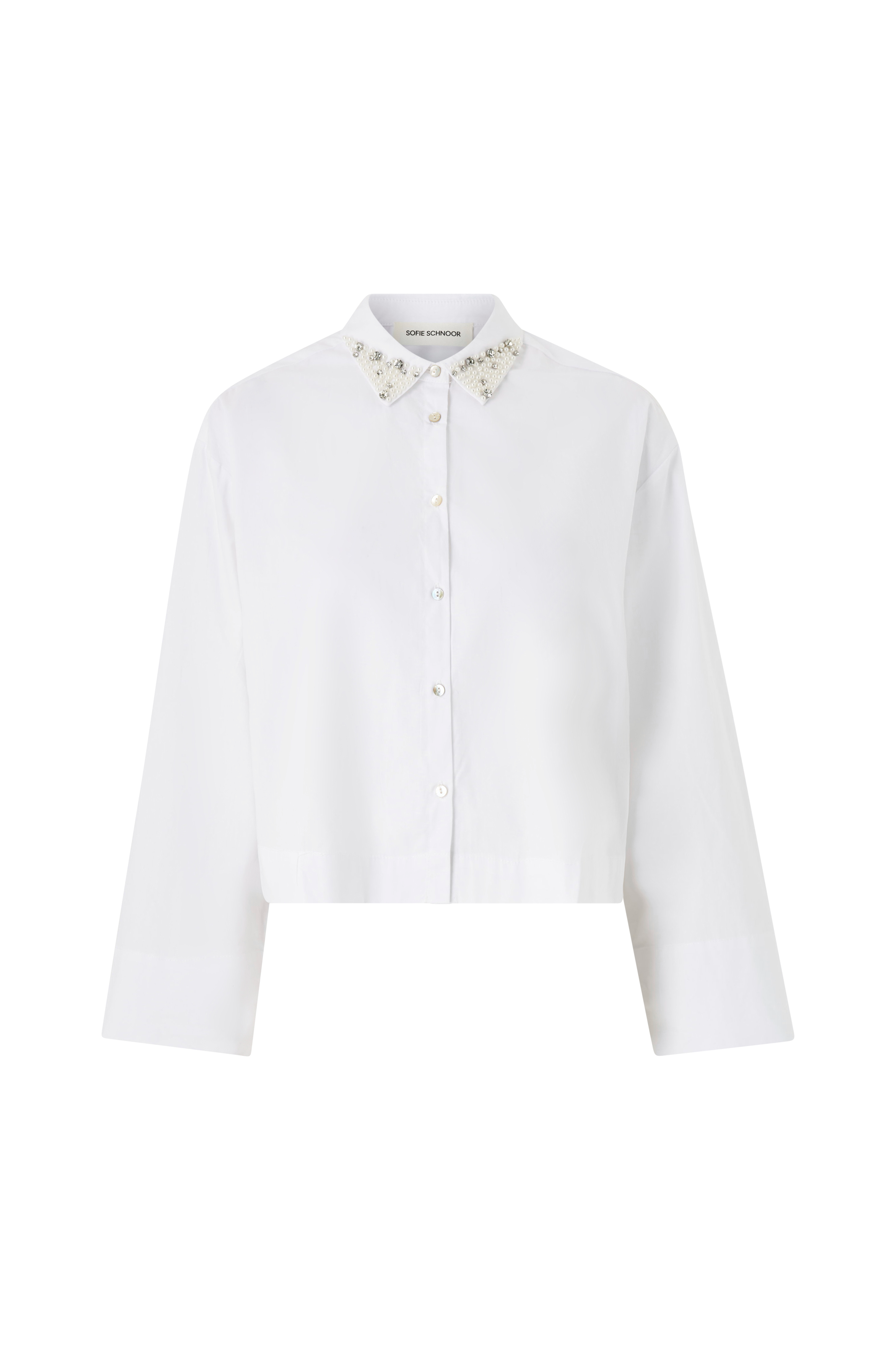 • Lige, bred model• Lille krave med perler og rhinsten• Langt, lige ærme• Lige søm med korte slidser i siderne