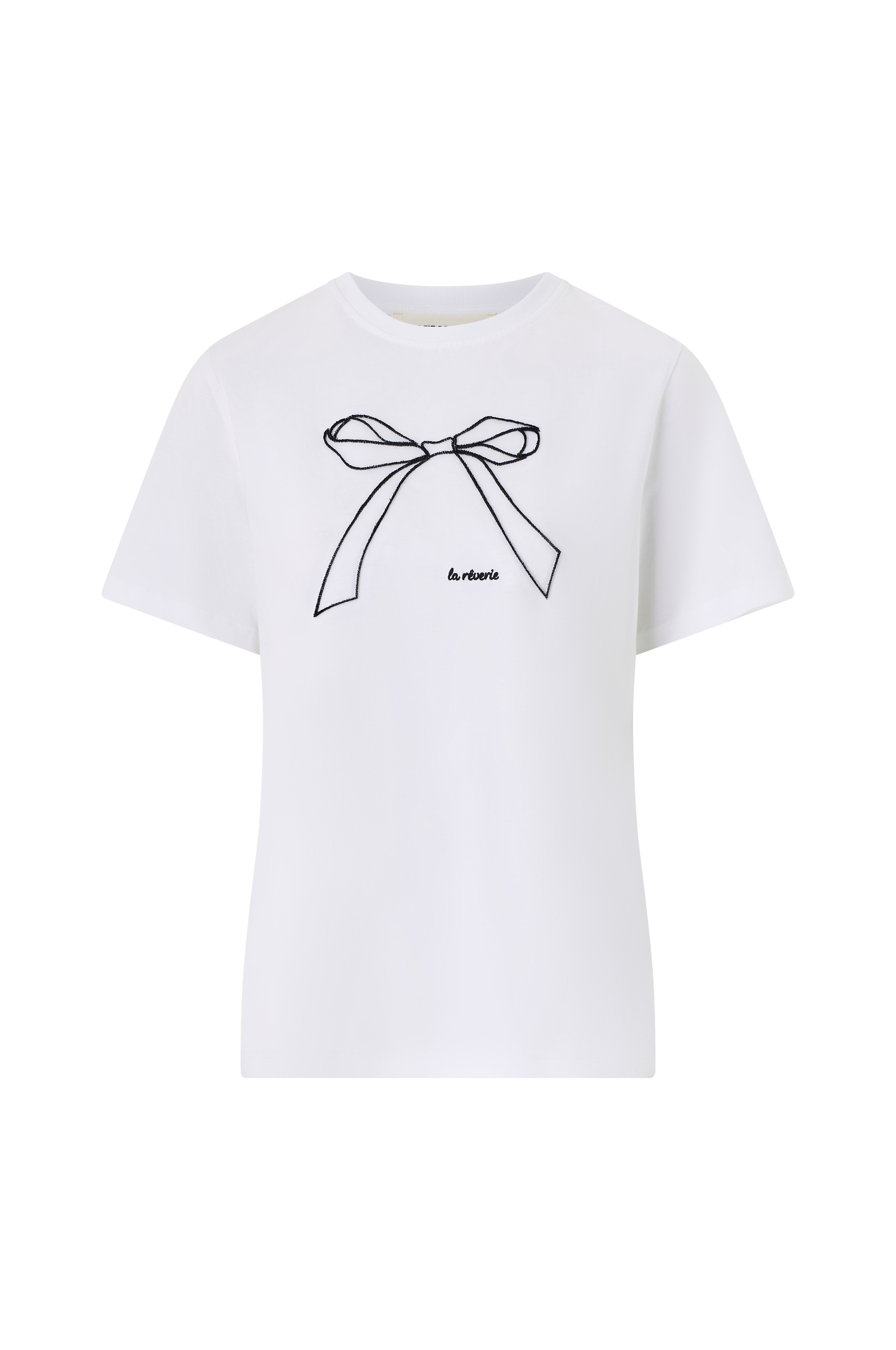 • Blød t-shirt i bomuld• Rund, ribbet halsudskæring• Broderet, sløjfeformet, 3D tryk foran