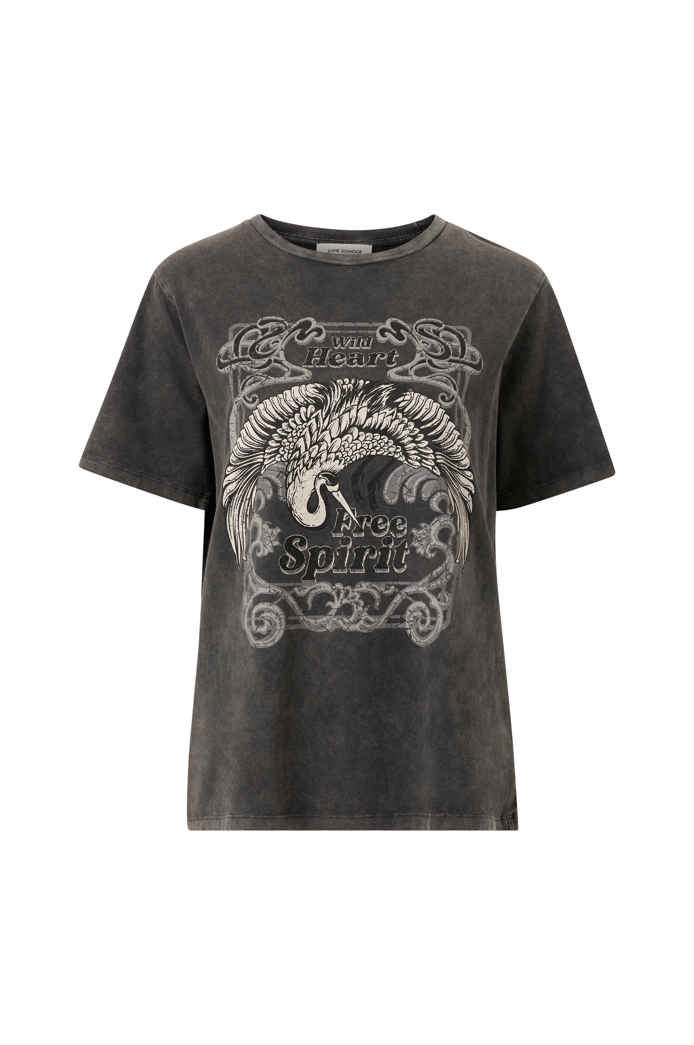 • Lige, uformel model• Stort tryk foran• Rund hals med lille ribkant