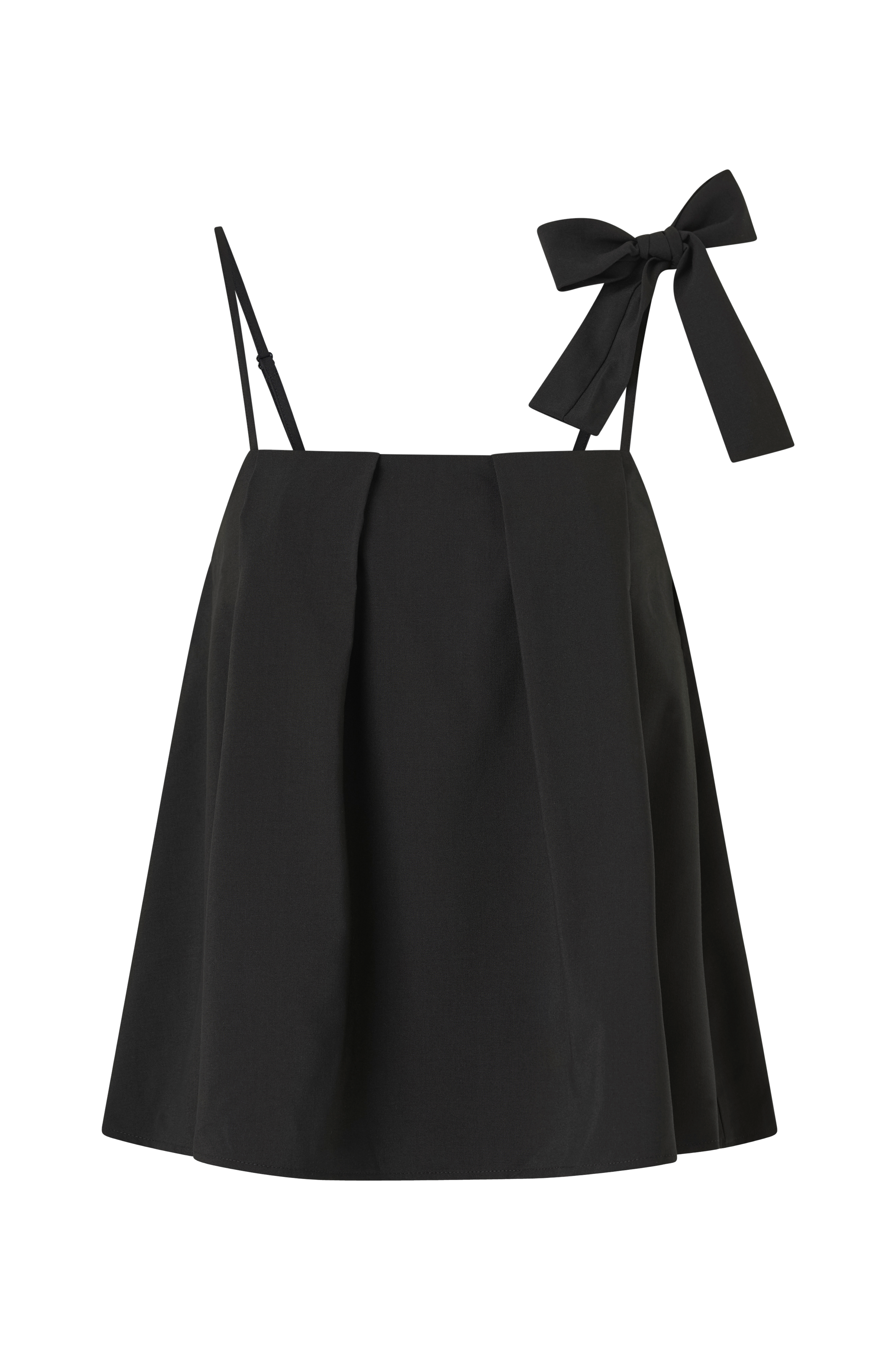 • Ærmeløs, foret top med tynde, justérbare skulderstropper• Sløjfedetalje på en skulder• Elastik oppe bagved• Vævet for