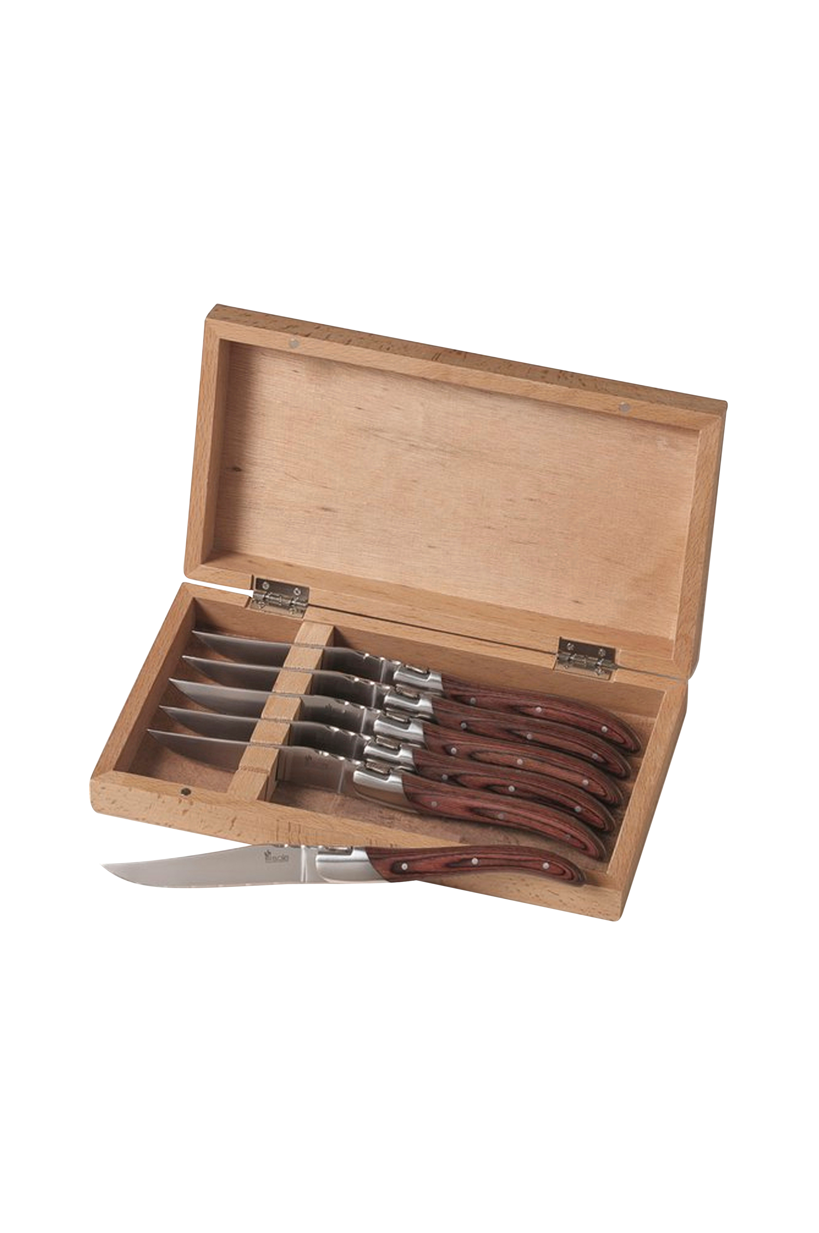 Grillknive i steakhouse-serien fra Sola er blevet populære verden over på grund af deres høje kvalitet og attraktive design. De er fremstillet med træhåndtag og knive i rustfrit stål, som tilfører et strejf af luksus til middagen. Sættet med seks knive leveres i en elegant trækasse, så de ikke bliver ridset. Det anbefales at vaske knivene op i hånden for at sikre lang holdbarhed, men de kan også gå i opvaskemaskinen; tør dem inden opbevaring.
