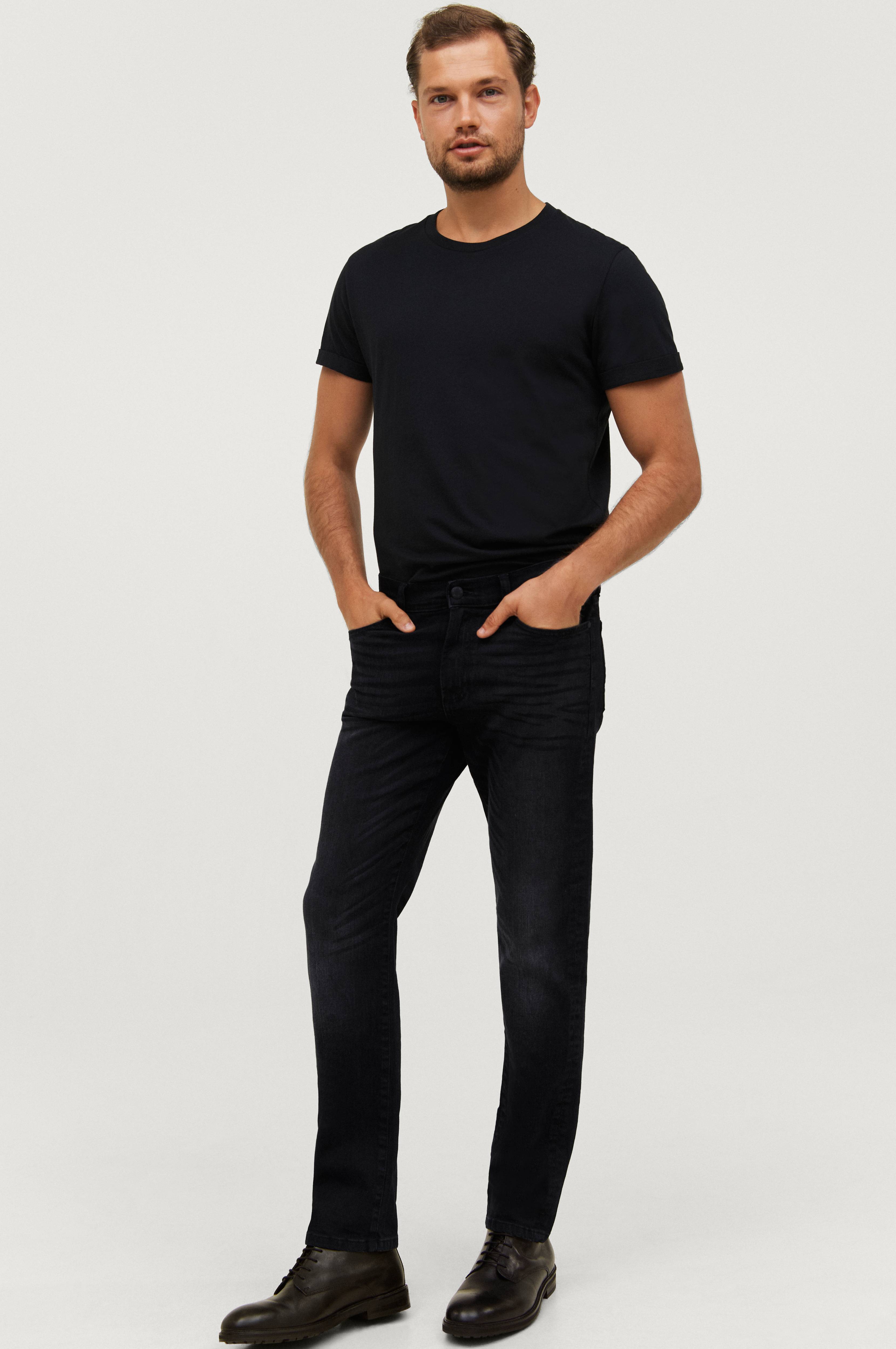 Jeans i stretchdenim med normal pasform og lige ben. 5-lommemodel med lynlås i gylpen.