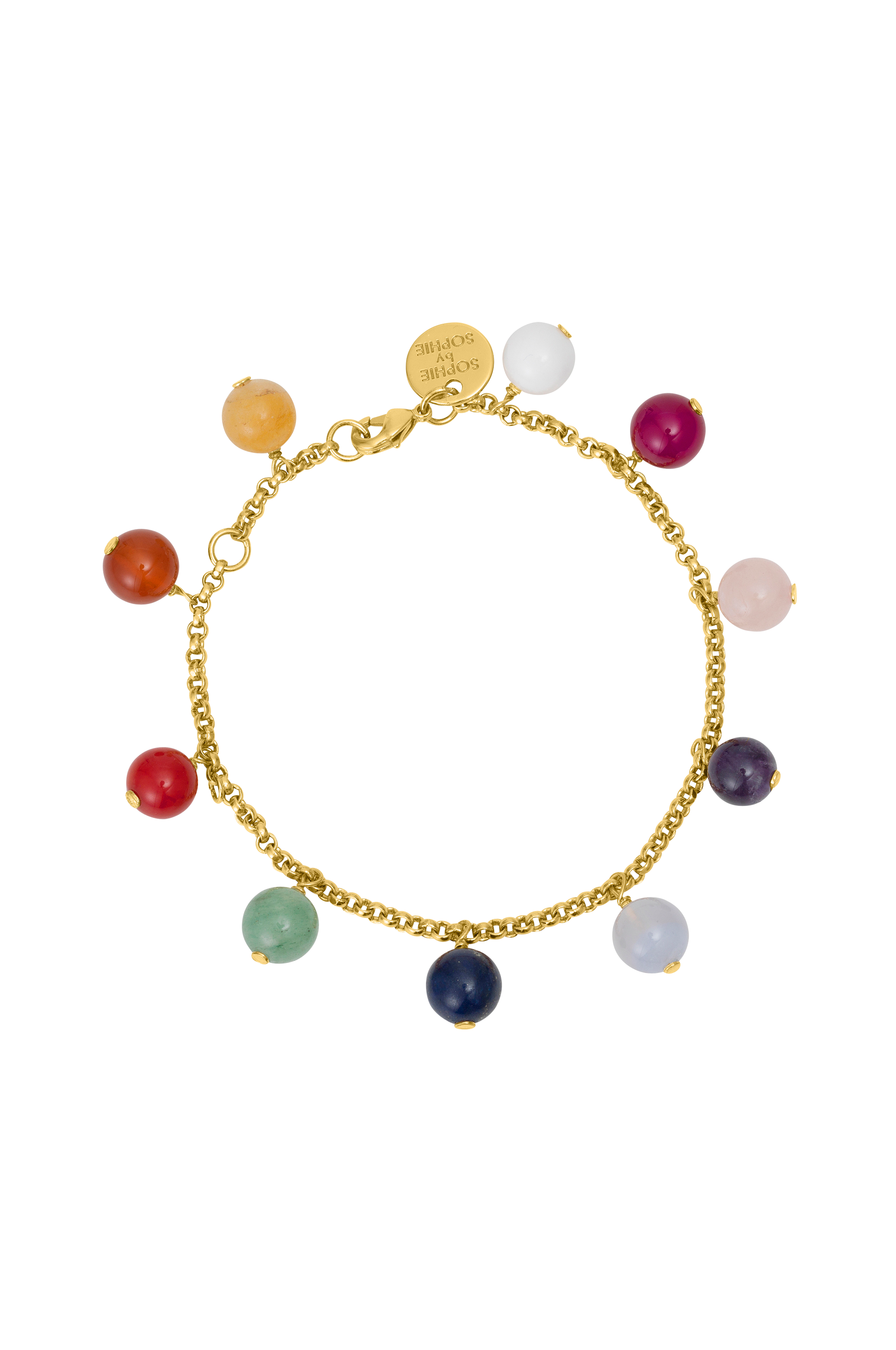 Armbånd Childhood fra Sophie by Sophie. Model med vedhæng af farvede sten, hvor hver sten repræsenterer en paragraf fra FN's Children's Rights Convention.